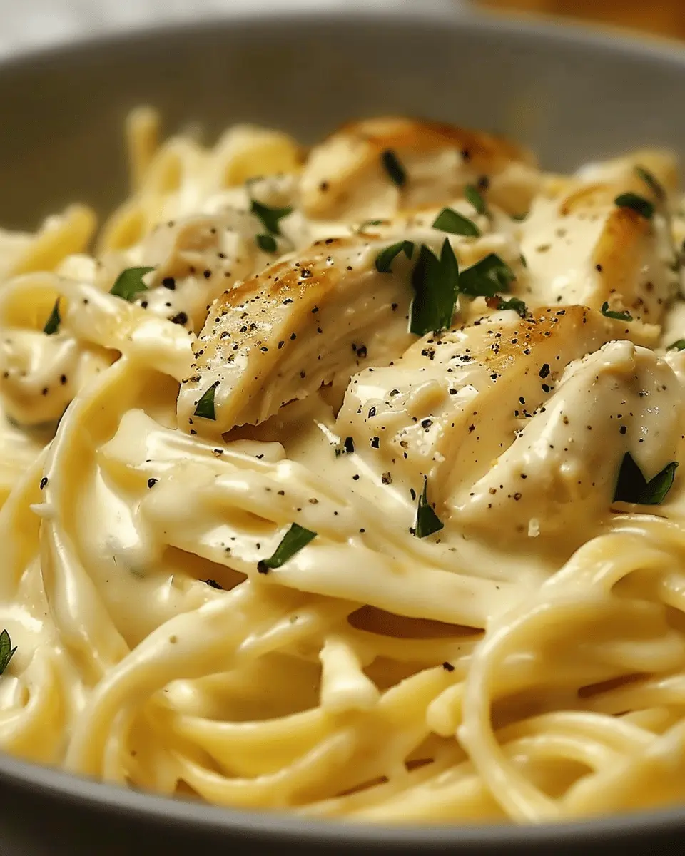 Enjoy this Amazing Chicken Alfredo Pasta ready in just 30 minutes, featuring a quick recipe with a delicious turkey bacon twist.