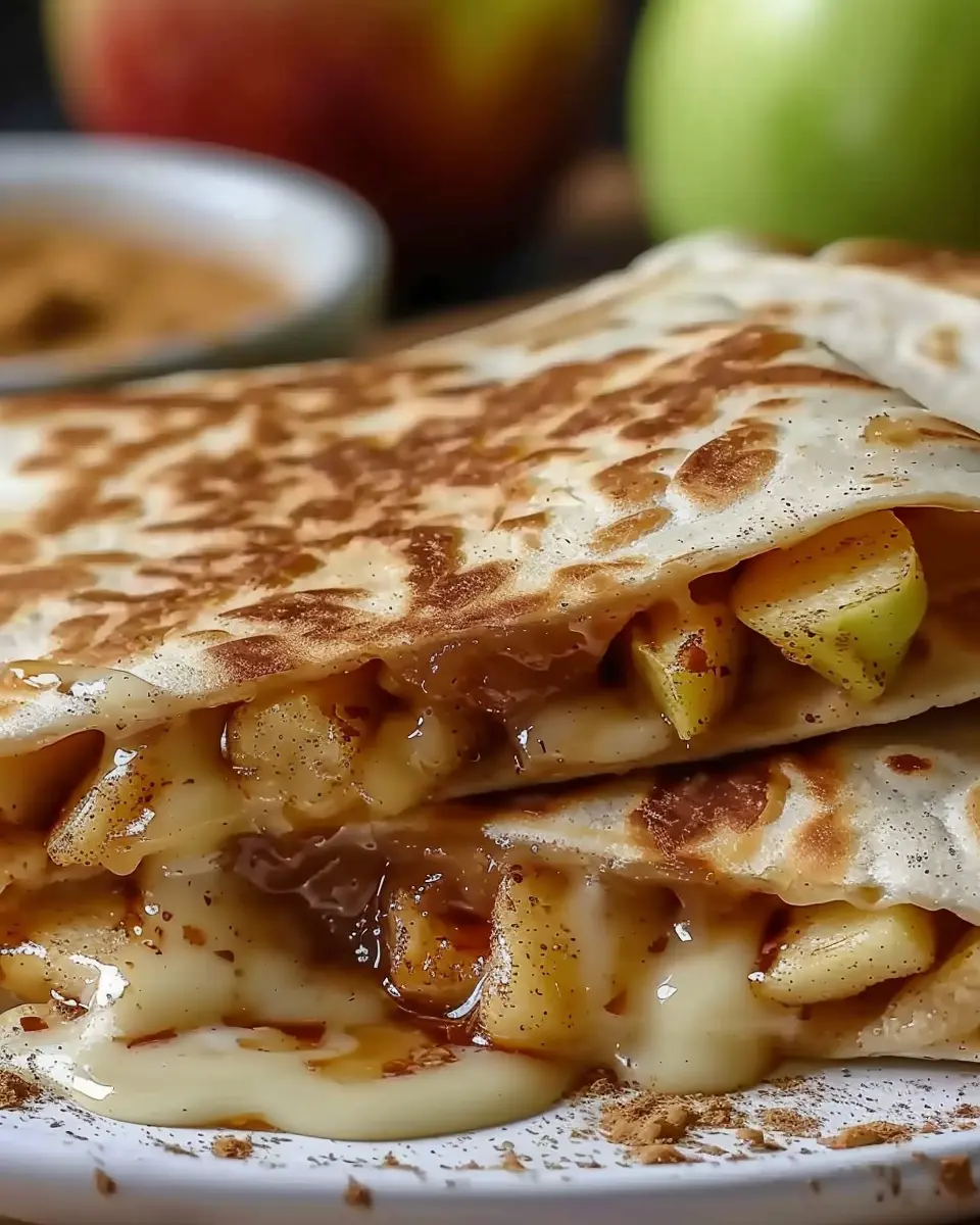 Imagine biting into a warm quesadilla filled not just with apples, but also with juicy peaches and a sprinkle of cinnamon—heavenly, right?