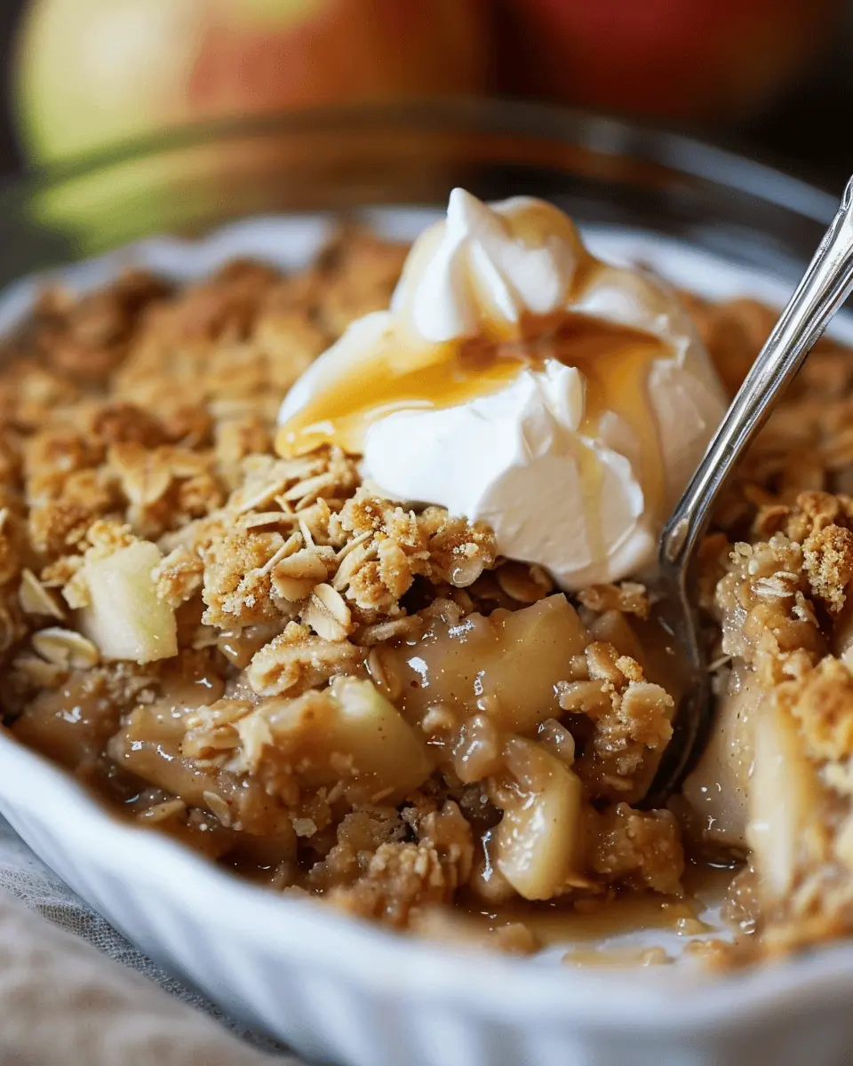 When enjoying your apple crisp, think about those delightful add-ons that can elevate your dessert from good to incredible. A dollop of homemade whipped cream adds a light, airy touch, while a scoop of vanilla ice cream melts warmly over the hot fruit and crisp topping, creating a delicious blend of flavors and textures. For something a bit more exciting, try drizzling some caramel sauce on top, adding an extra layer of indulgence. If you’re feeling adventurous, a pinch of sea salt can enhance the sweetness!