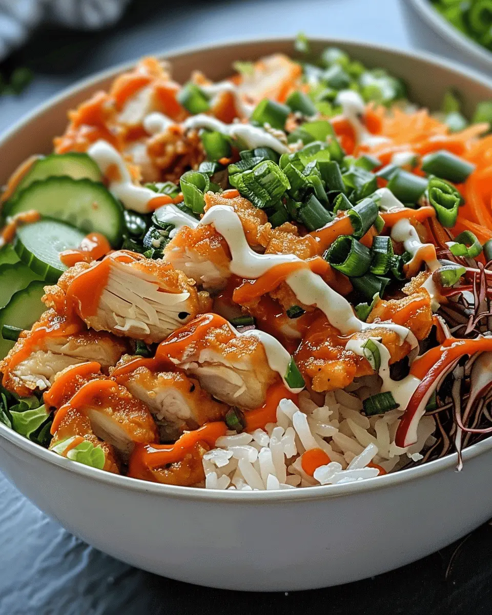 There are several ways to customize the Bang Bang Chicken Bowl to fit your dietary needs. If you’re looking to make it gluten-free, use a gluten-free soy sauce or a coconut aminos alternative. To create a dairy-free version, simply swap out any dairy ingredients with plant-based alternatives. For a lower-carb option, consider replacing rice with cauliflower rice or quinoa. These swaps not only cater to various dietary restrictions but can also introduce new flavors and nutrients into your bowl.