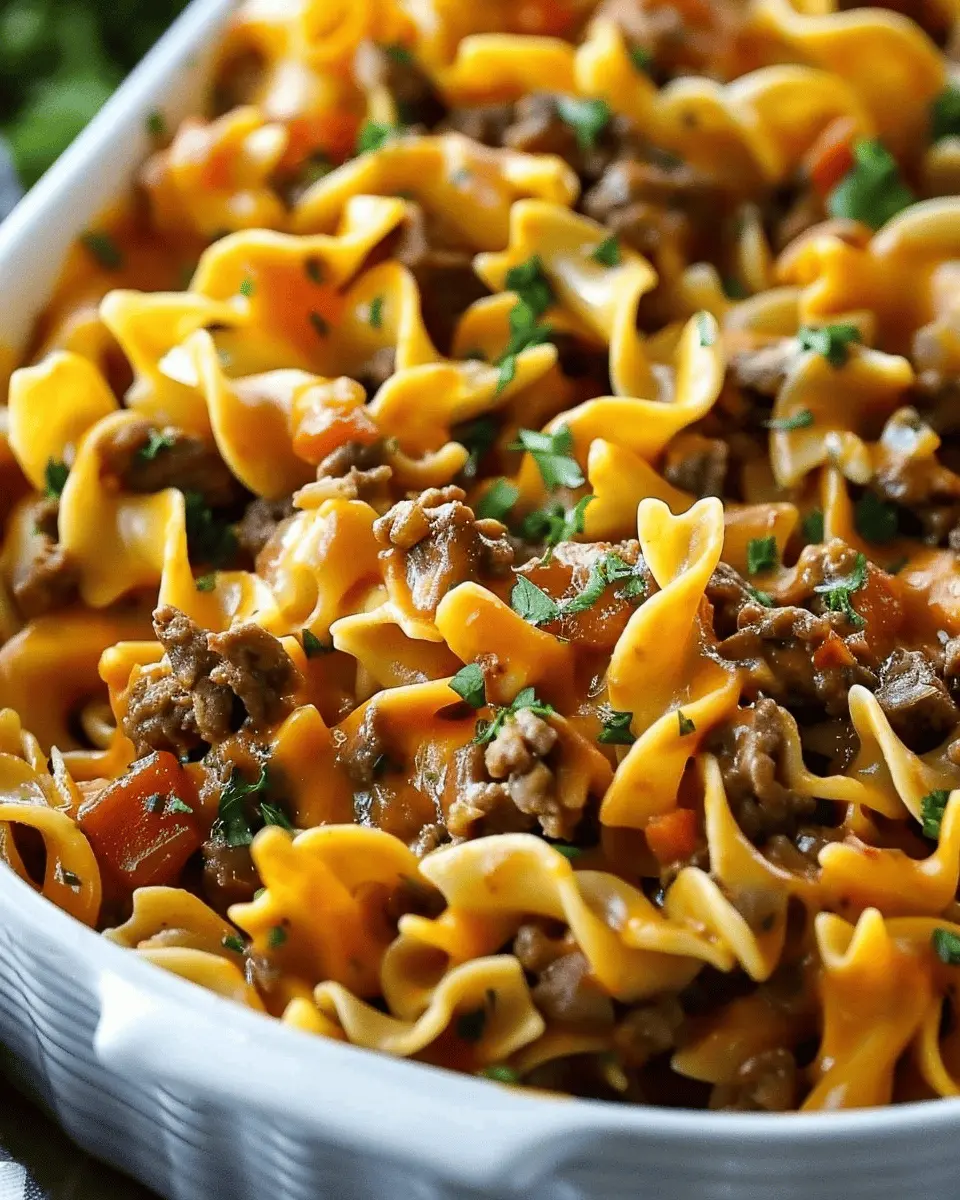 For those who like a little heat, a spicy beef noodle casserole can ignite your taste buds! This version is all about bold flavors and warmth.