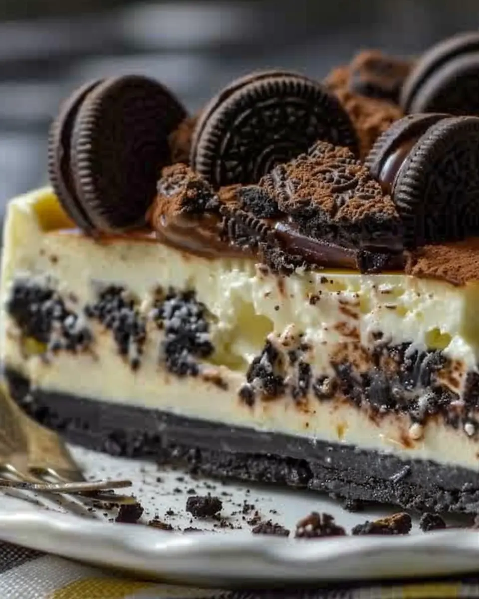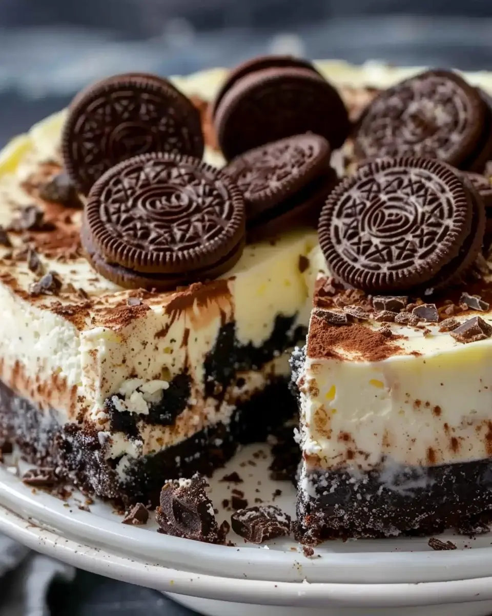 A rich and creamy cheesecake recipe infused with Oreo cookie goodness and a delightful chocolate twist.