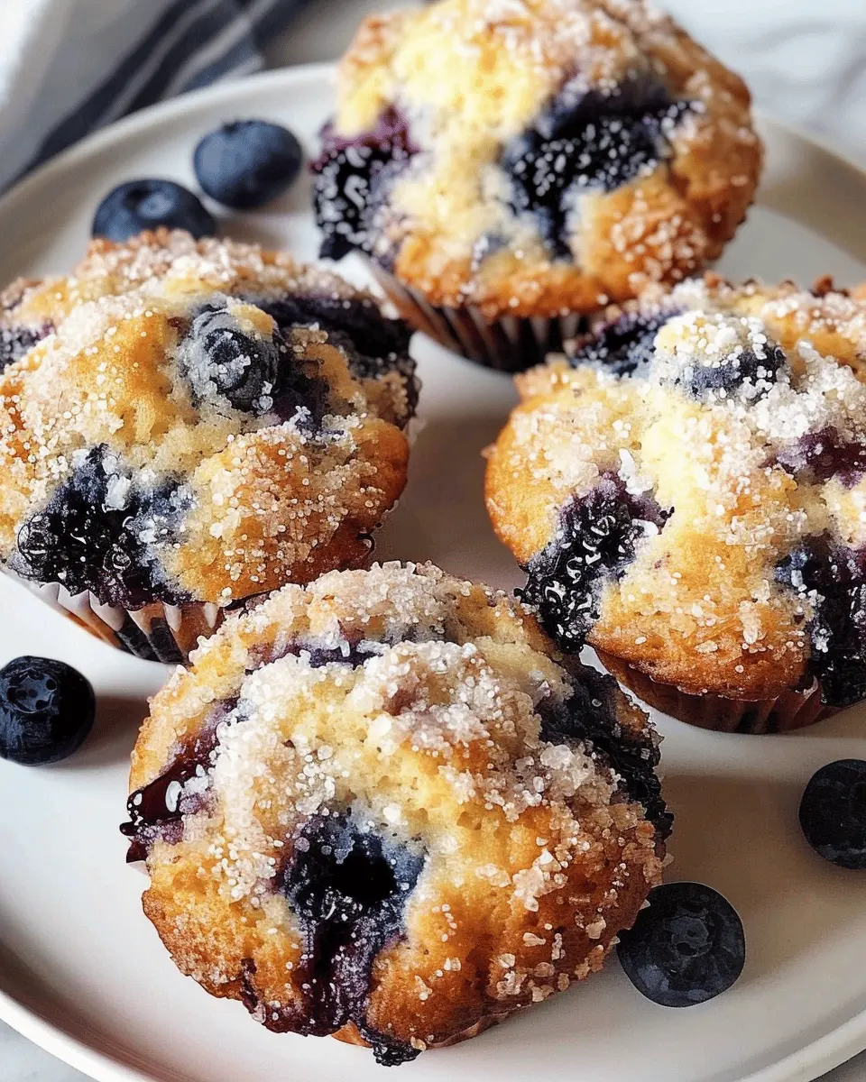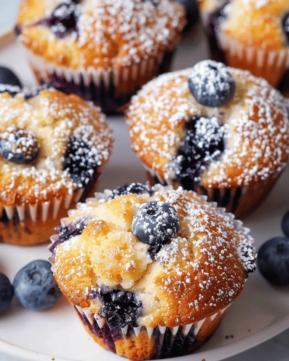 Enjoy these moist and fluffy blueberry muffins for a delightful morning treat. Perfectly sweet and bursting with juicy blueberries!