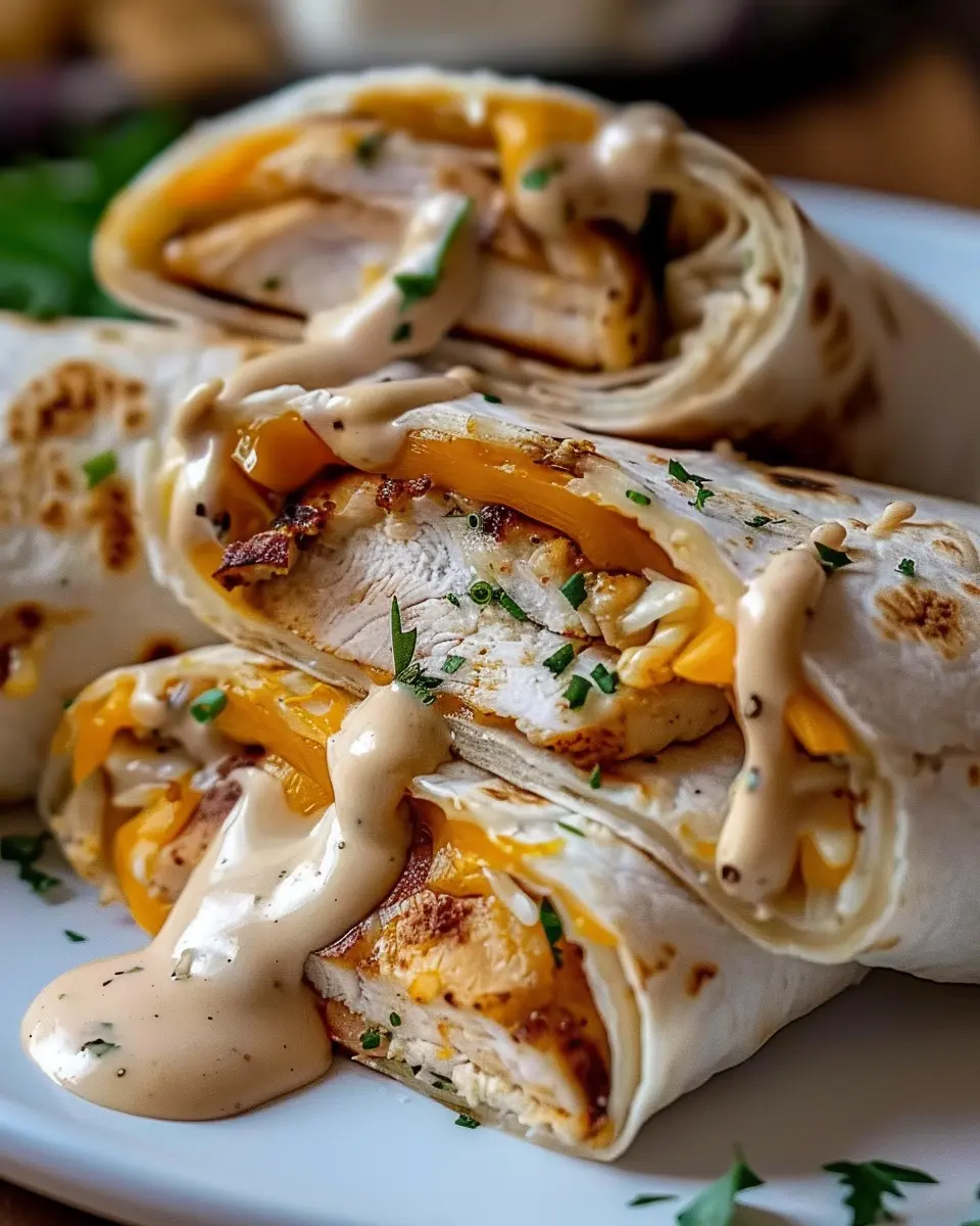 PrintCheesy Garlic Chicken Wraps: Easy Homemade Delights for Everyone