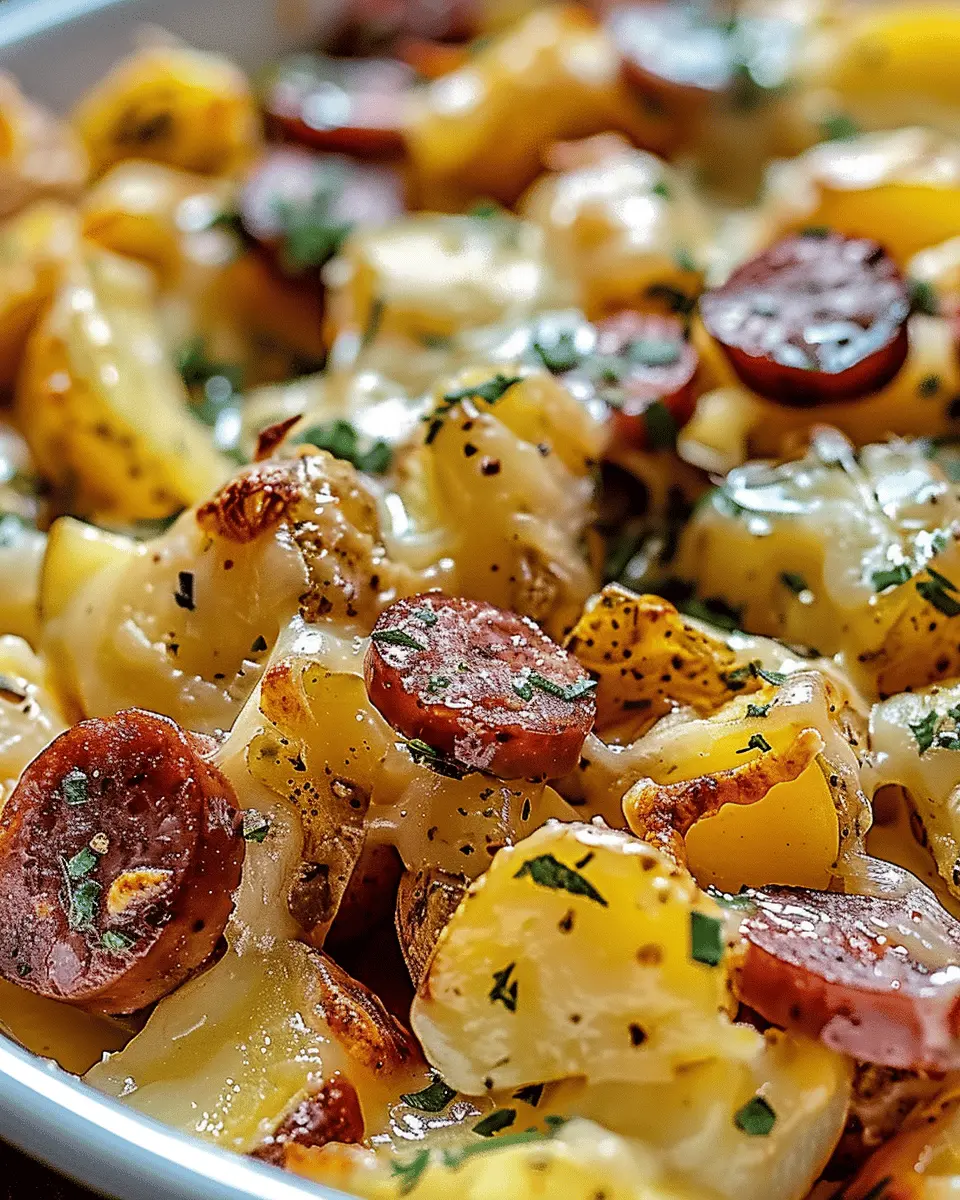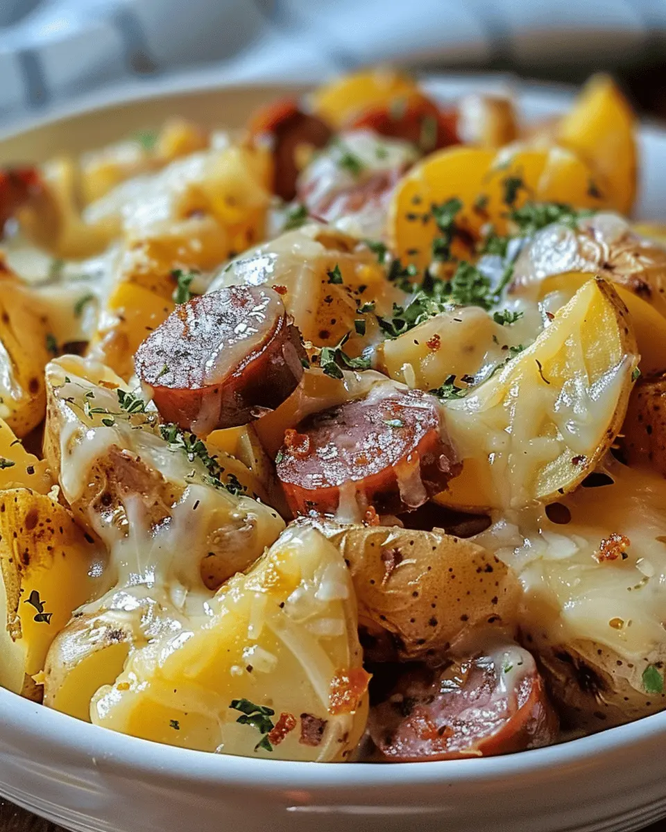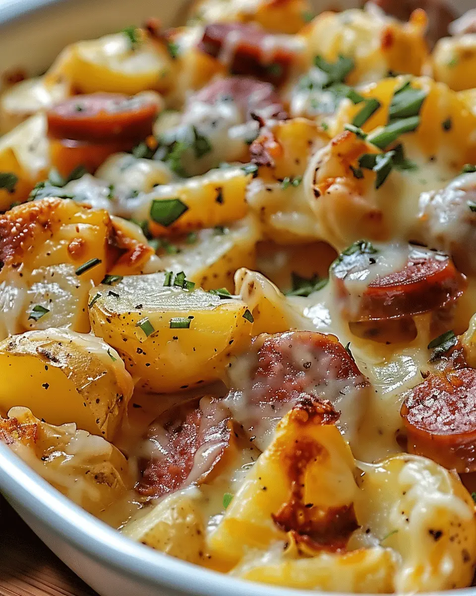 Keywords: Cheesy Ranch Potatoes, Smoked Sausage, Comfort Dish