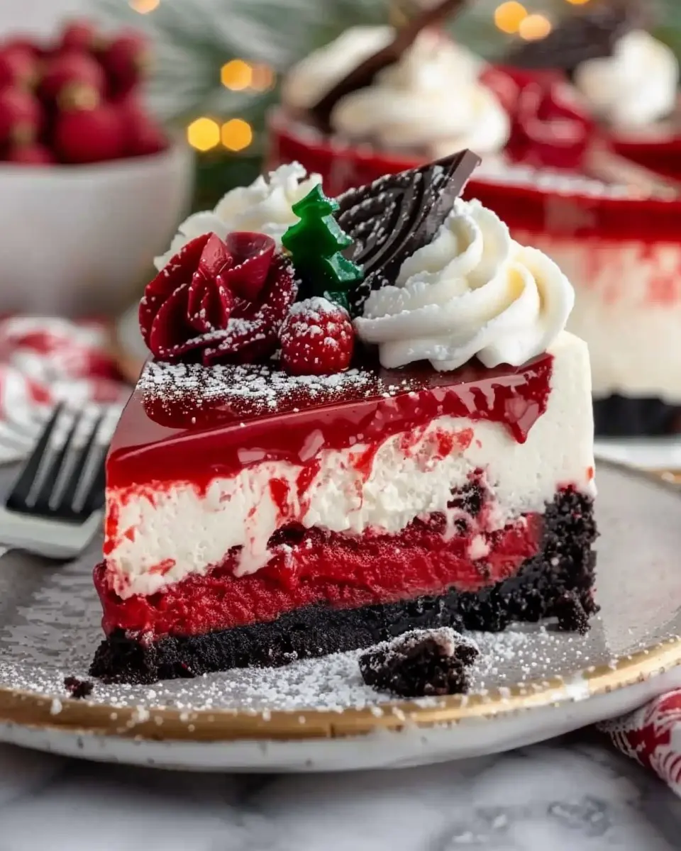 Keywords: Christmas Red Velvet Cheesecake, Holiday Dessert, Cheesecake Recipe