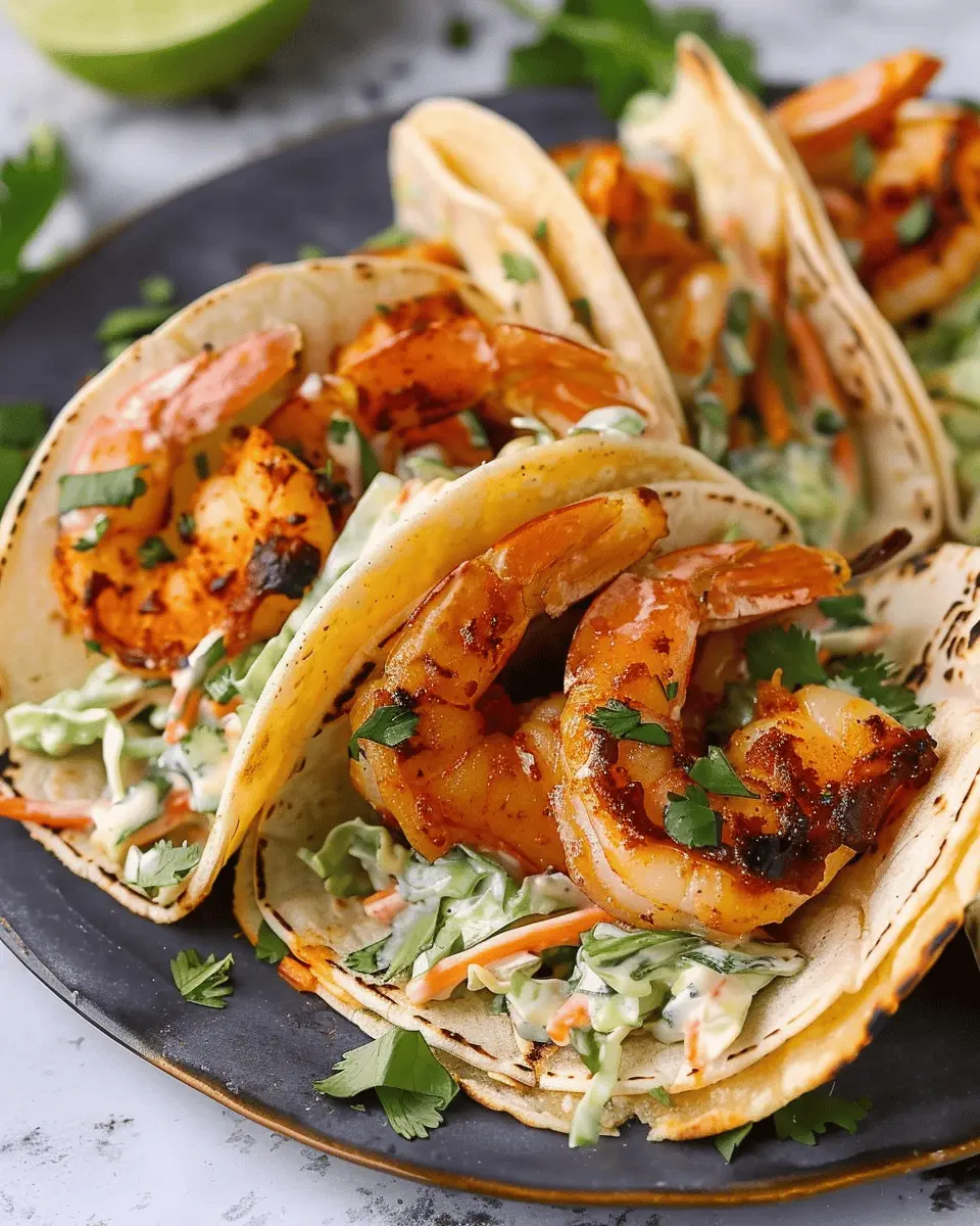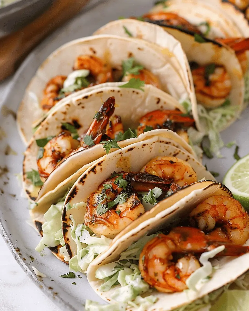 Absolutely! You can prepare many components ahead of time. Cook your shrimp and store it in an airtight container in the refrigerator for up to two days. As for the slaw, prepare it the night before to allow those flavors to meld beautifully. Just be cautious not to assemble the tacos too early; soggy tortillas are never fun! To keep it fresh, assemble right before serving and enjoy a delicious, hassle-free meal.