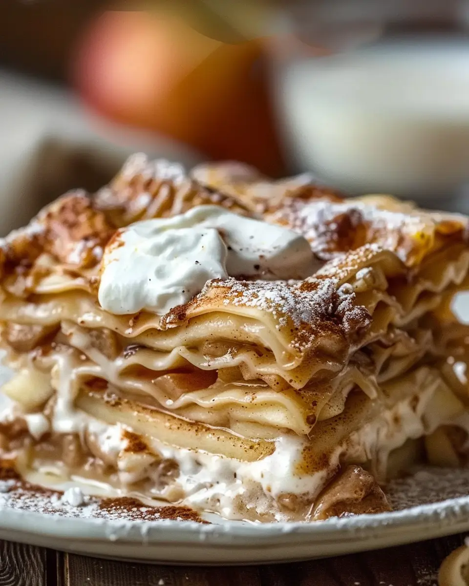• Classic Pairings: Enjoy your lasagna warm, topped with a generous scoop of vanilla ice cream or a dollop of whipped cream. This will enhance the warm cinnamon and apple flavors, giving each bite a delightful creaminess.