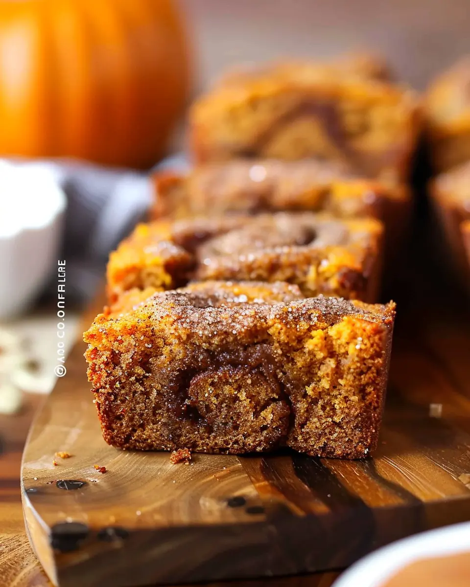Enjoy the warm, comforting flavors of autumn with these delightful Cinnamon Swirl Pumpkin Bread Mini Loaves.