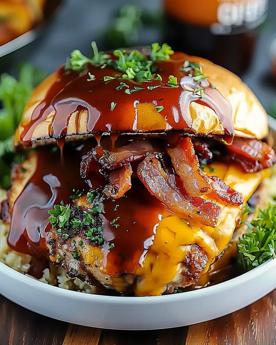 Want to keep it casual? Turn your Cowboy BBQ Turkey Bacon Cheddar Chicken into sliders. Simply slice the chicken, place it on small buns, and let your guests customize with toppings like pickles, jalapeños, and BBQ sauce. This turns dinner into a fun, interactive gathering!