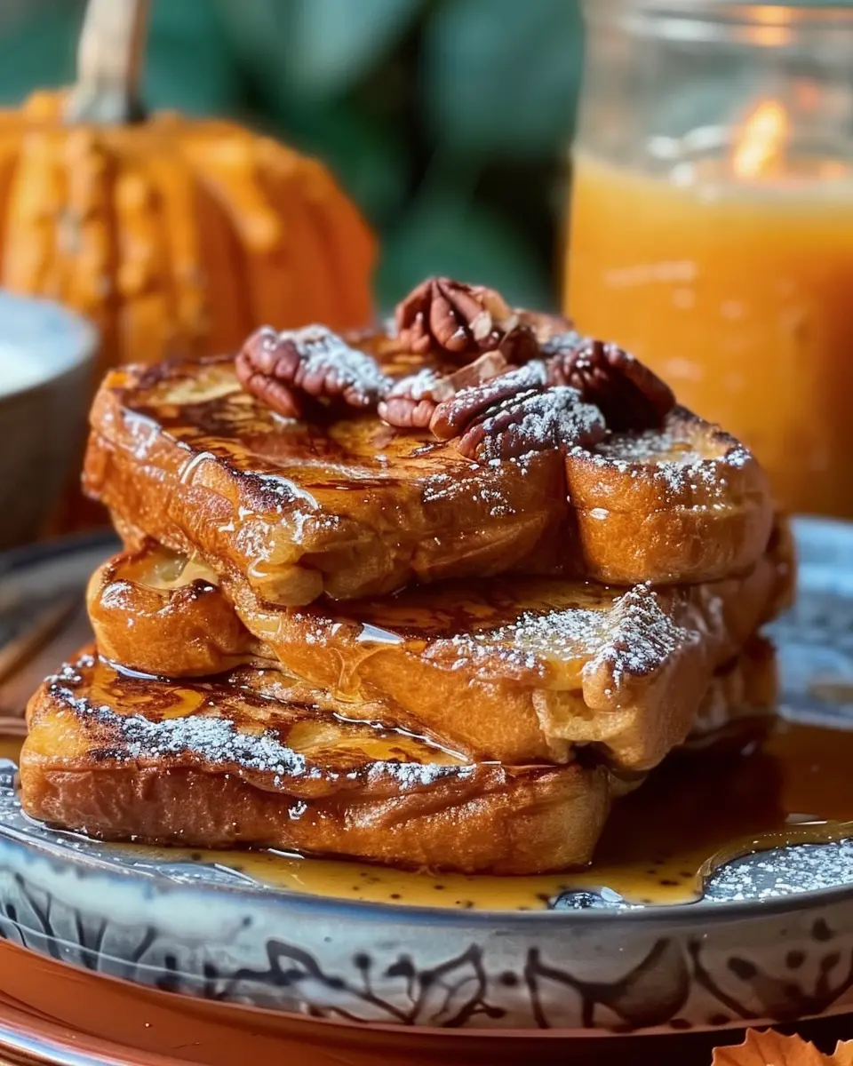 PrintCozy Friendsgiving Pumpkin-Spiced French Toast Recipe with Turkey Bacon