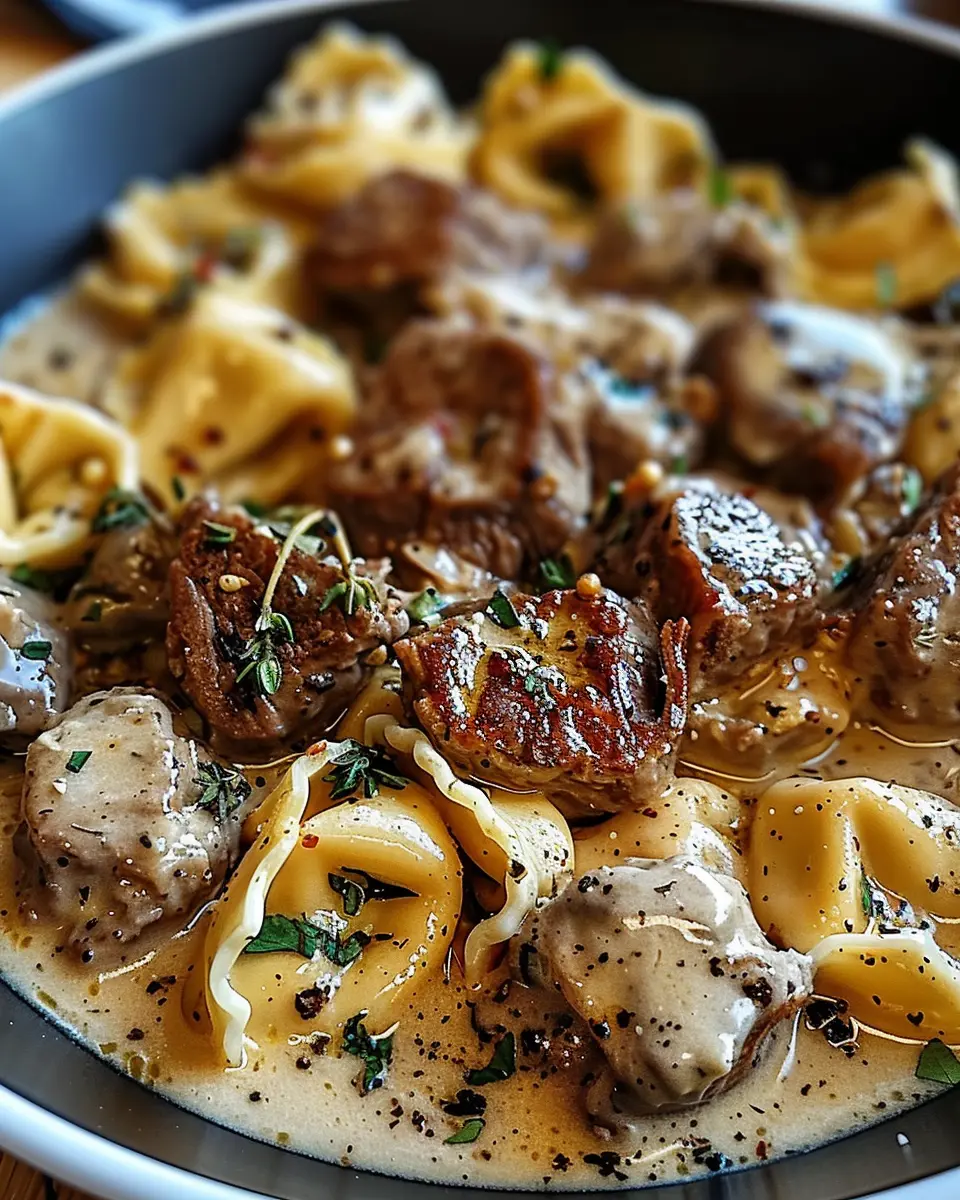 Delve into the rich flavors of Cracked Garlic Steak Tortellini in Indulgent Creamhouse Sauce, a dish that marries savory steak with delicate tortellini in a creamy, flavorful sauce.