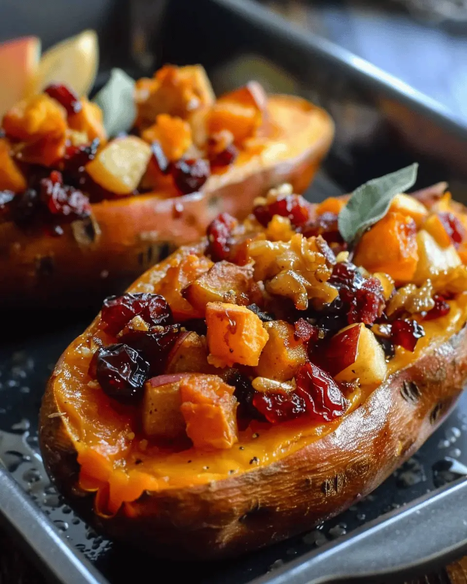 Moreover, the versatility of Cranberry Apple Twice-Baked Sweet Potatoes makes them perfect for any occasion. Whether you’re hosting a Thanksgiving feast, a cozy dinner with friends, or simply want to treat yourself, these twice-baked beauties will span the spectrum from special occasion to everyday comfort food. Plus, they can be easily customized—add a sprinkle of crushed nuts for some crunch or swap turkey bacon for a delightful twist.
