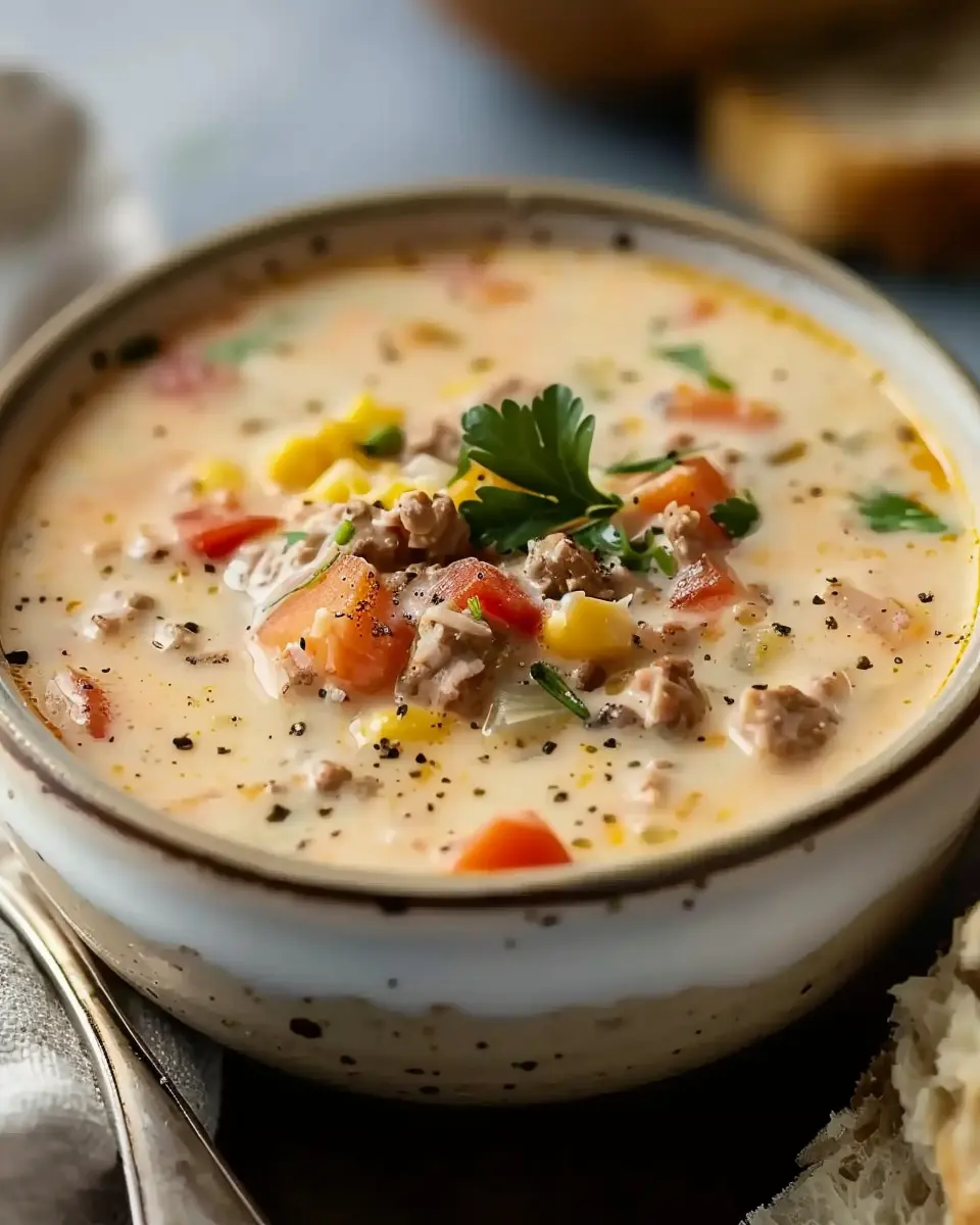 Home » Recipes » Creamy Cowboy Soup Recipe: Easy Comfort with Turkey Bacon and Chicken Ham