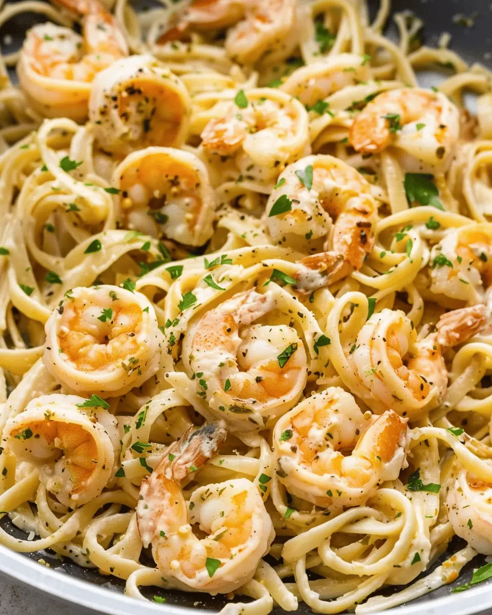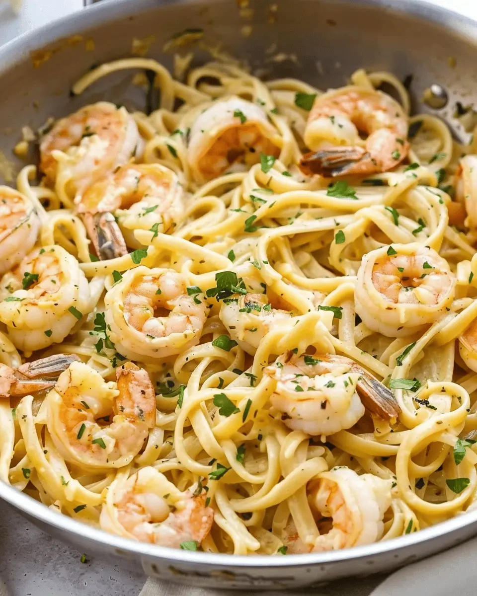 A delicious and indulgent creamy garlic shrimp pasta recipe that’s perfect for dinner.