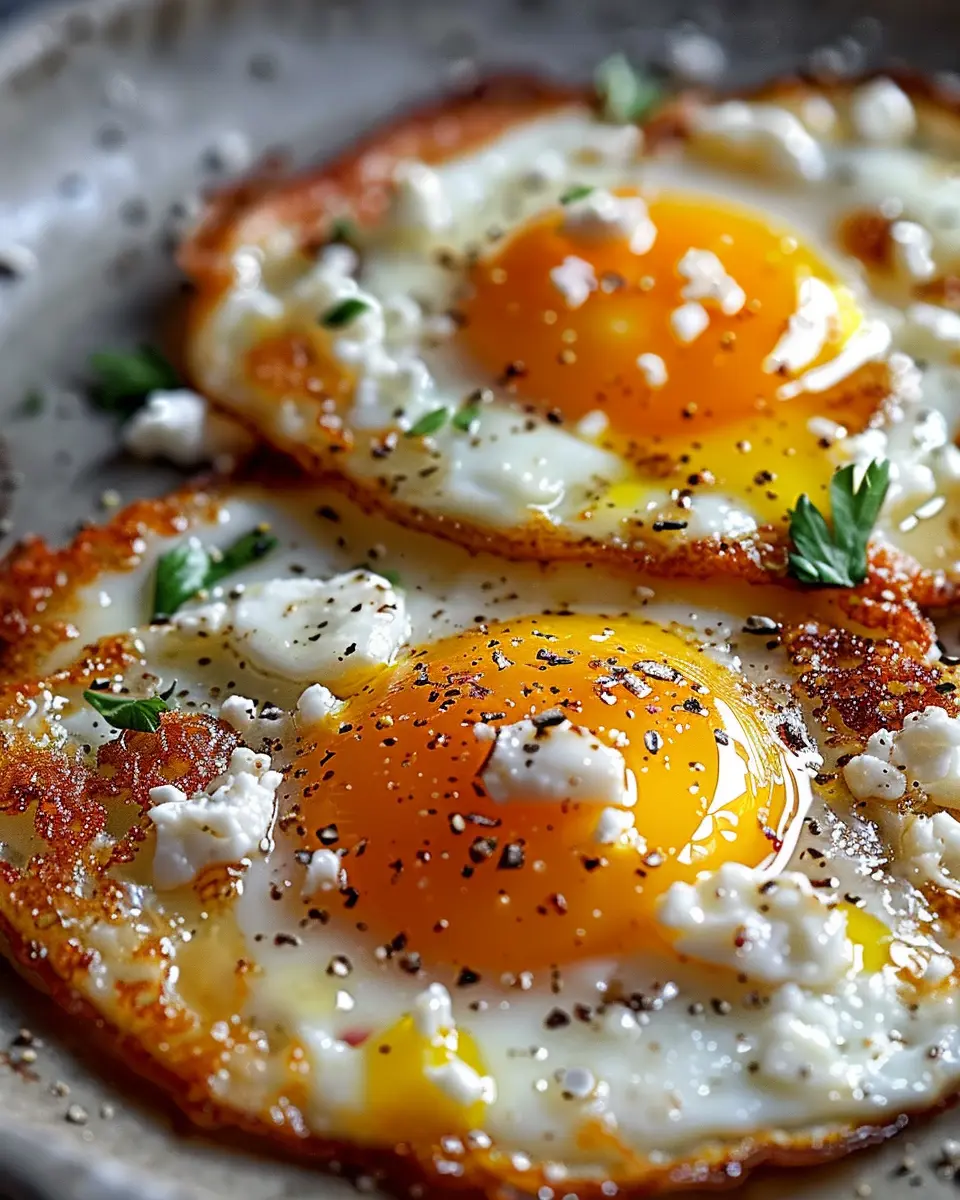Enjoy a flavorful start to your morning with these Crispy Feta Fried Eggs, perfect for any breakfast lover.