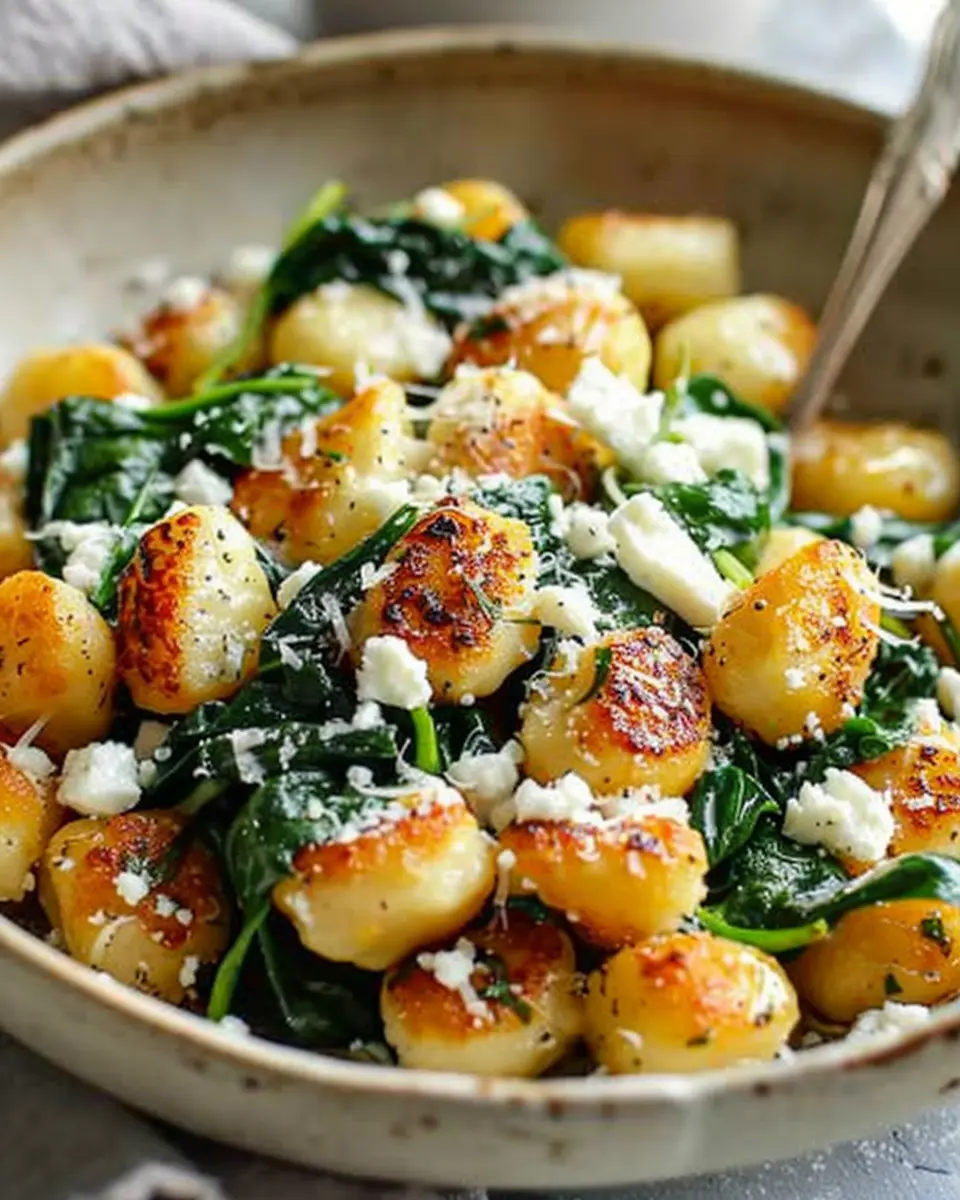 Introduction to Crispy Gnocchi with Spinach and Feta