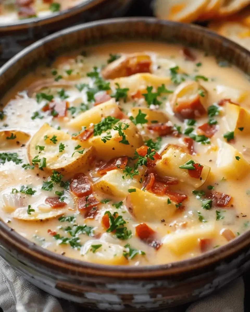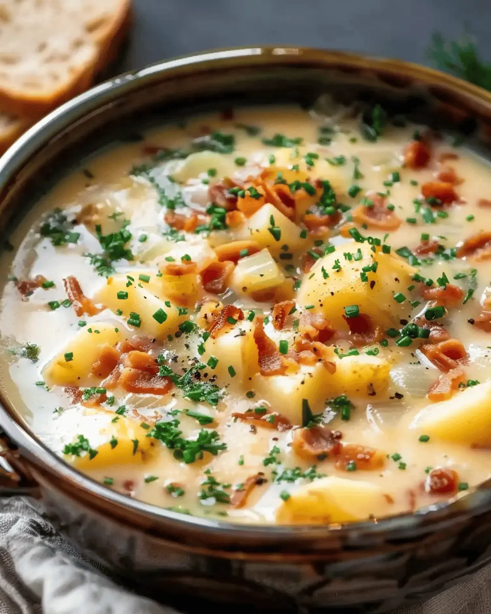A comforting and easy-to-make potato soup featuring turkey bacon, perfect for any meal.