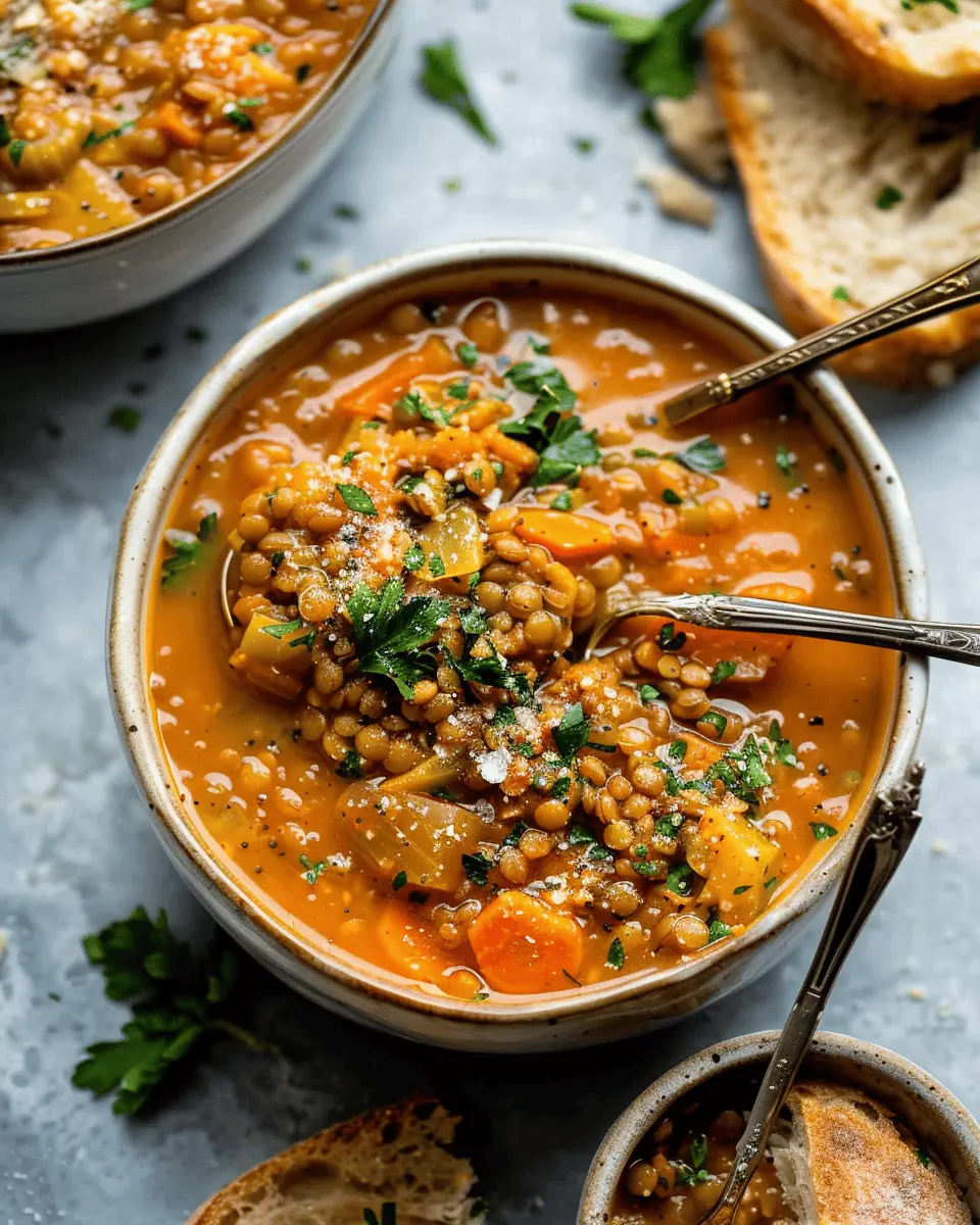 Your damn good vegan lentil soup is almost ready to shine! Ladle it into bowls and garnish with fresh herbs like parsley or cilantro. Pair this soup with crusty bread for dipping—trust me, there’s no better match.