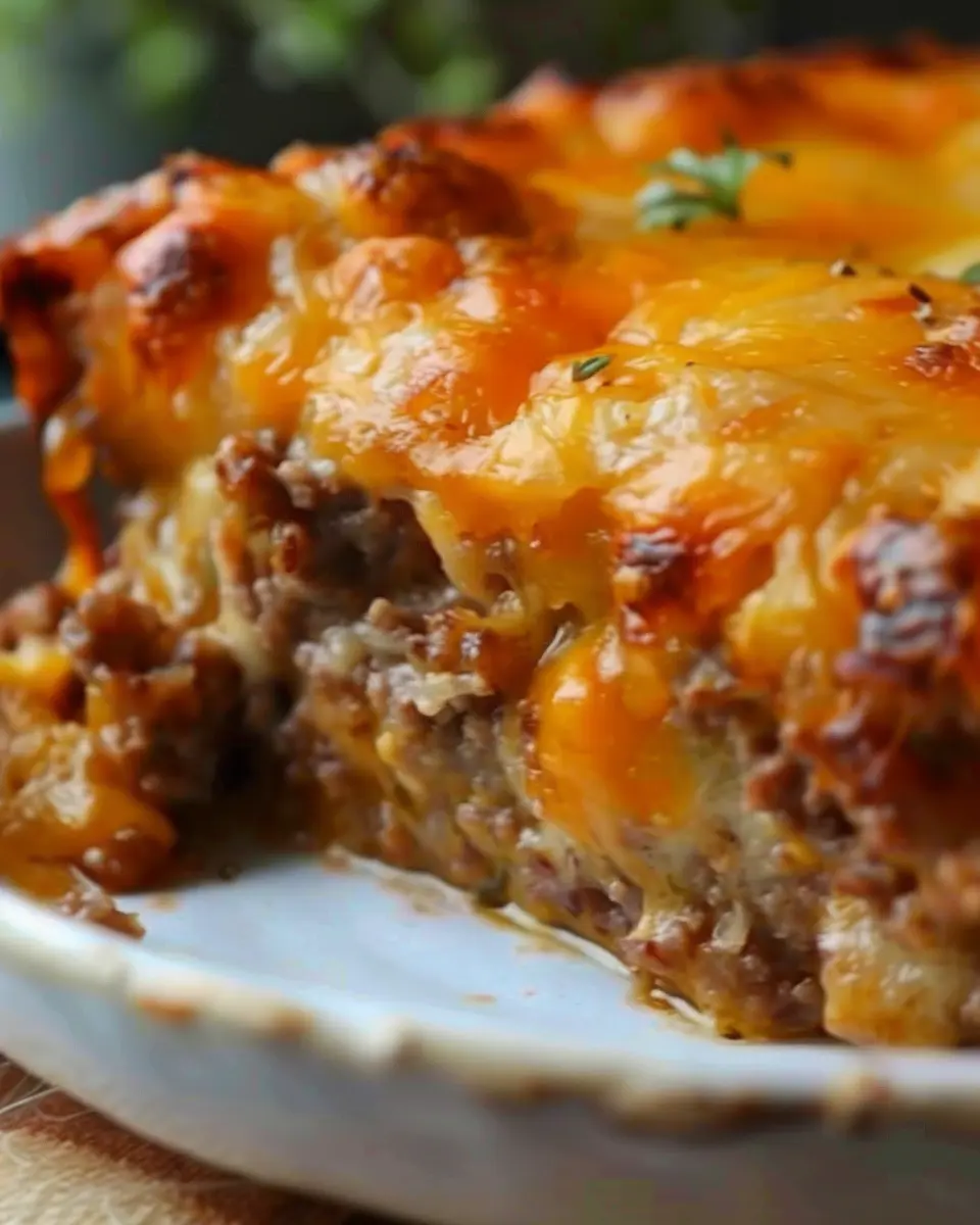 A deliciously cheesy meatloaf casserole featuring a unique turkey bacon twist.