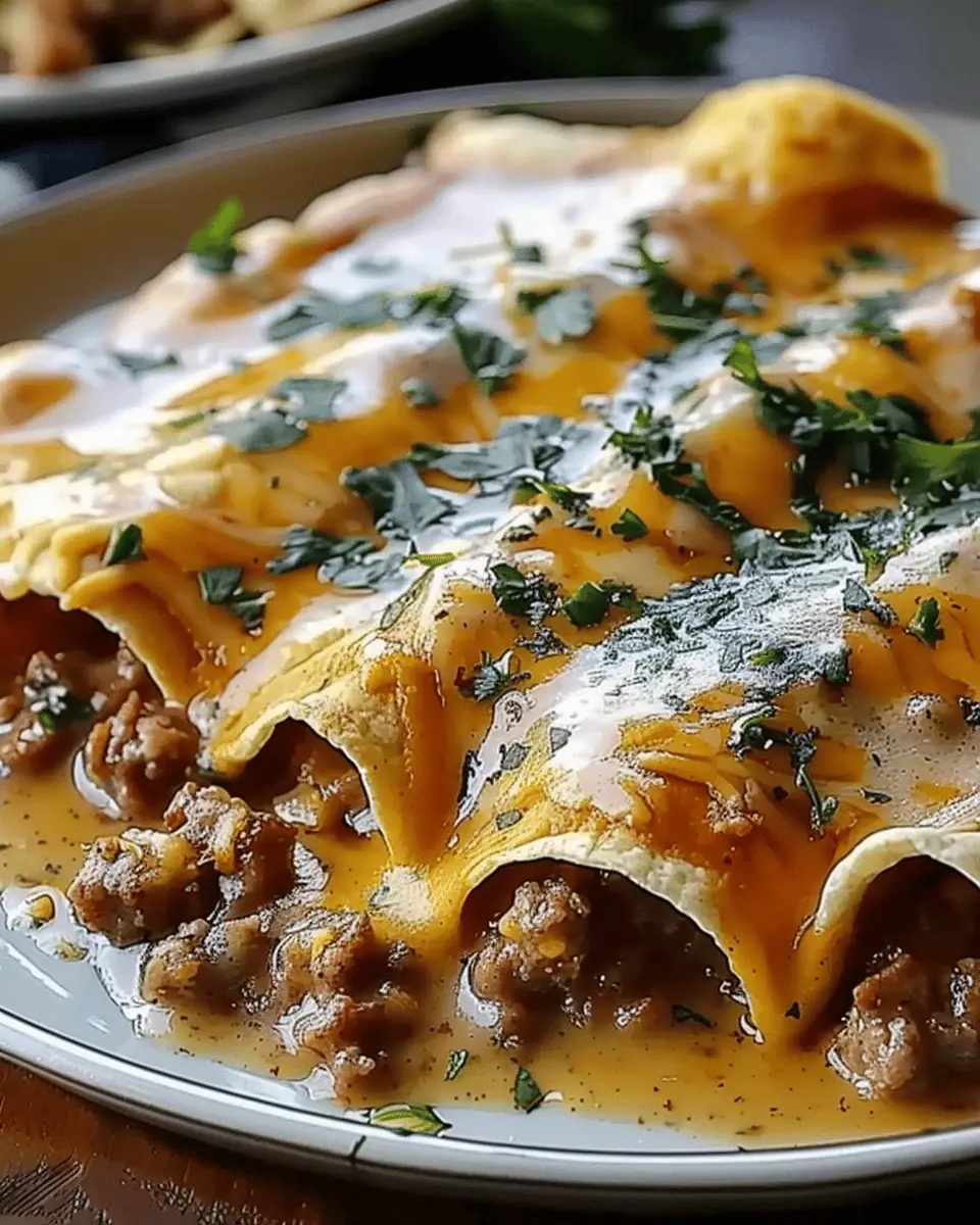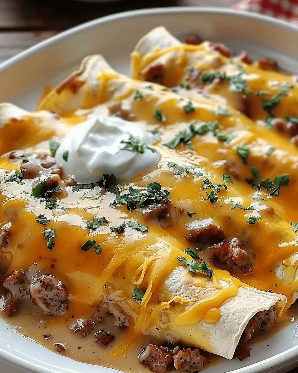 PrintDelicious Breakfast Enchiladas with Sausage Gravy Made Easy