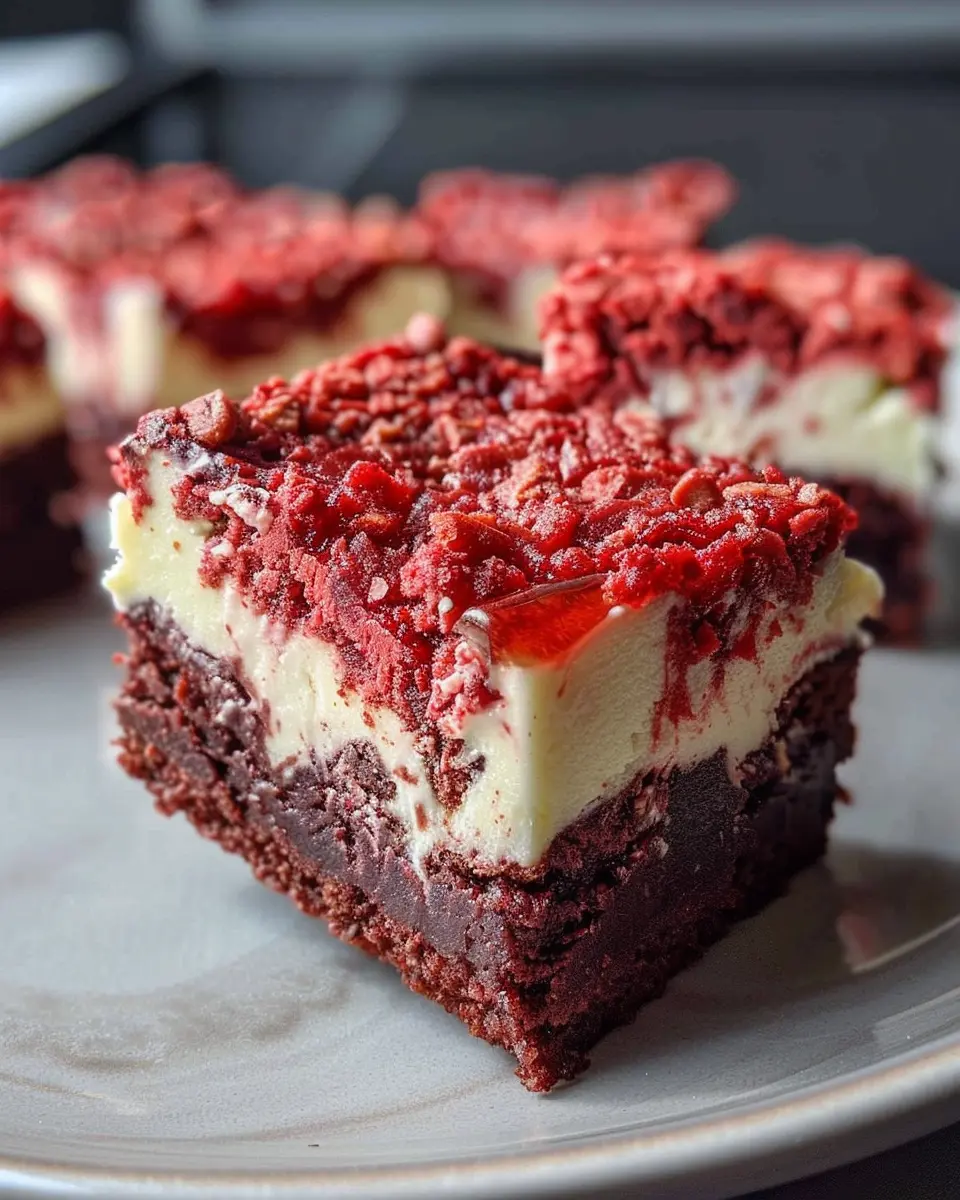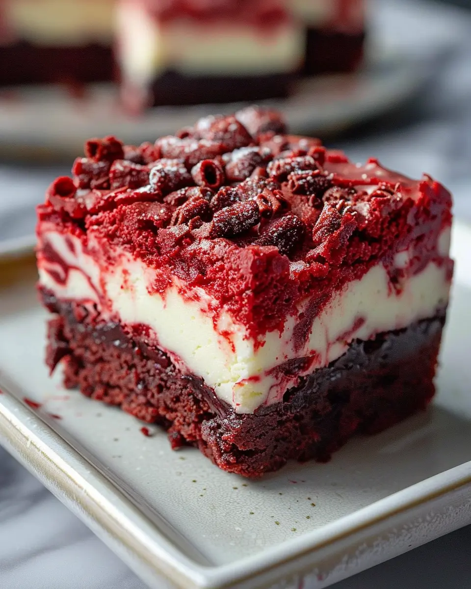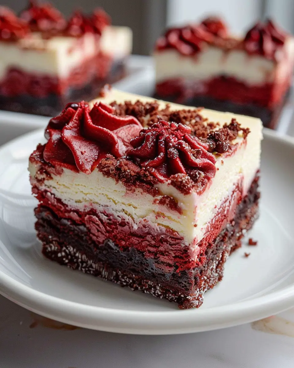 Indulge in these rich and creamy red velvet cheesecake brownies that are perfect for any occasion.