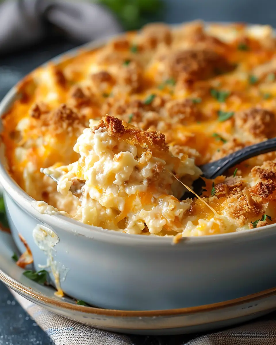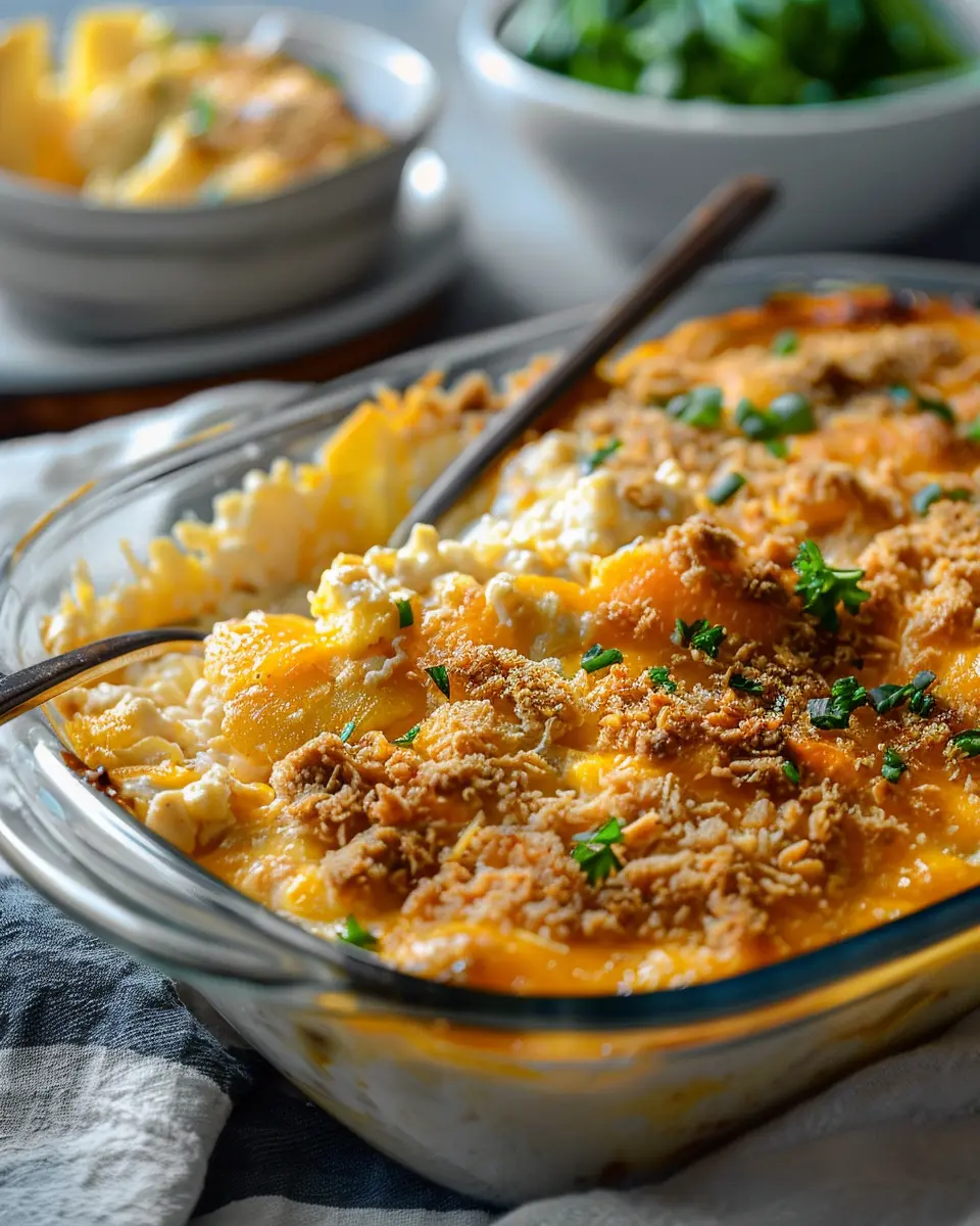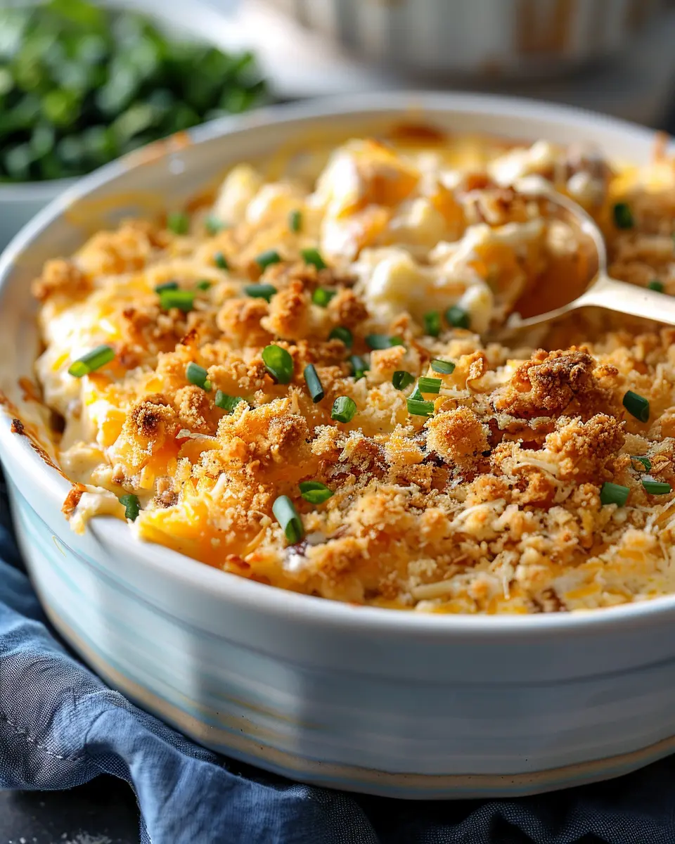 Next, melt some butter (about ¼ cup should do) and pour it over the cracker crumbs. Mix it until the crumbs are fully coated in buttery goodness. This topping not only adds texture but also enhances the savory flavors of the casserole. If you’re feeling adventurous, sprinkle in some dried herbs like thyme or oregano for an extra layer of flavor.
