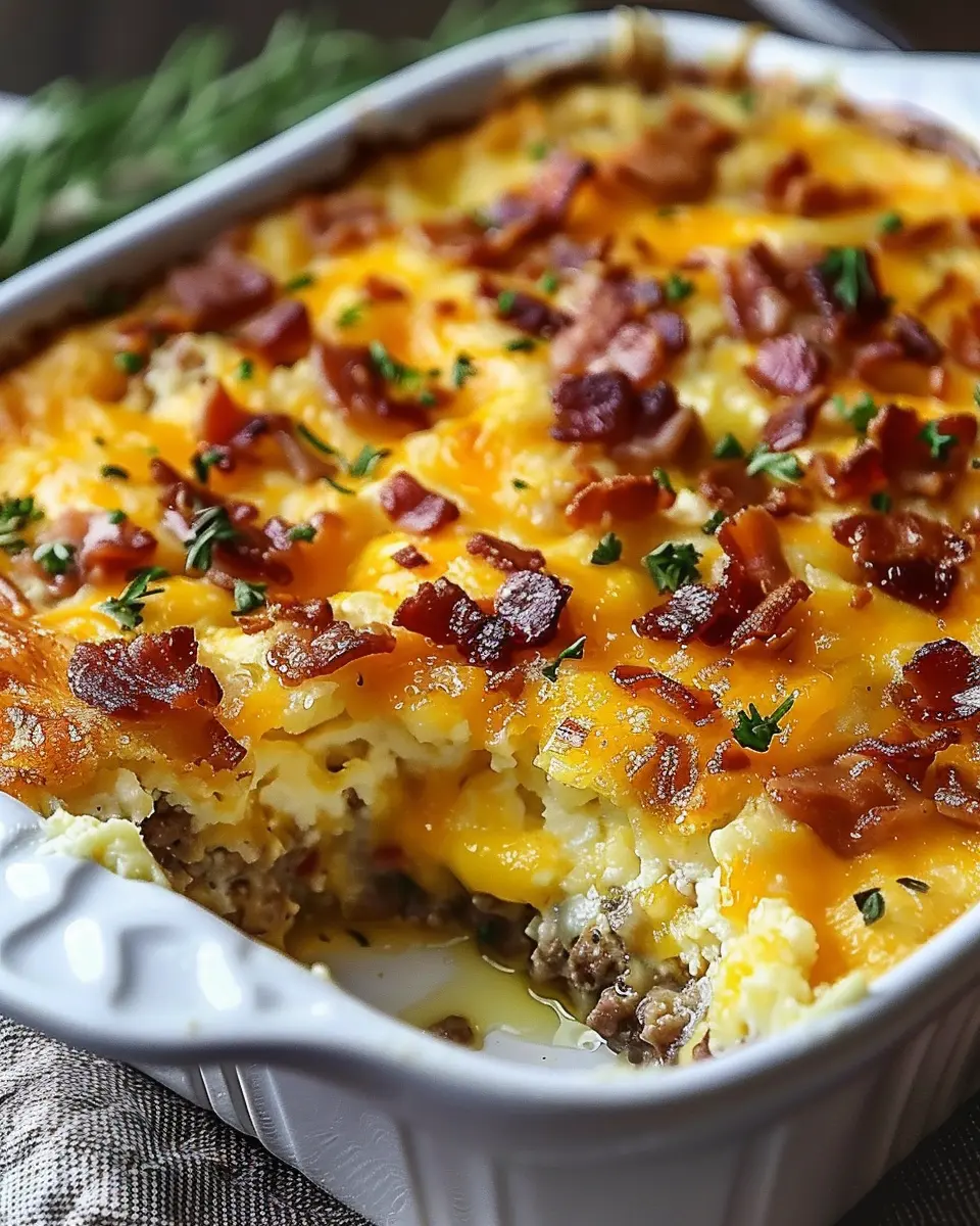 Absolutely! One of the best things about this easy crack breakfast casserole is its make-ahead convenience. You can prepare the entire dish the night before and refrigerate it. This not only saves time in the morning but also allows the flavors to meld beautifully. Just pop it in the oven when you wake up, and in about an hour, you’ll have a hearty breakfast ready to serve. If you prefer, you can also prep the ingredients ahead of time and assemble it right before baking.