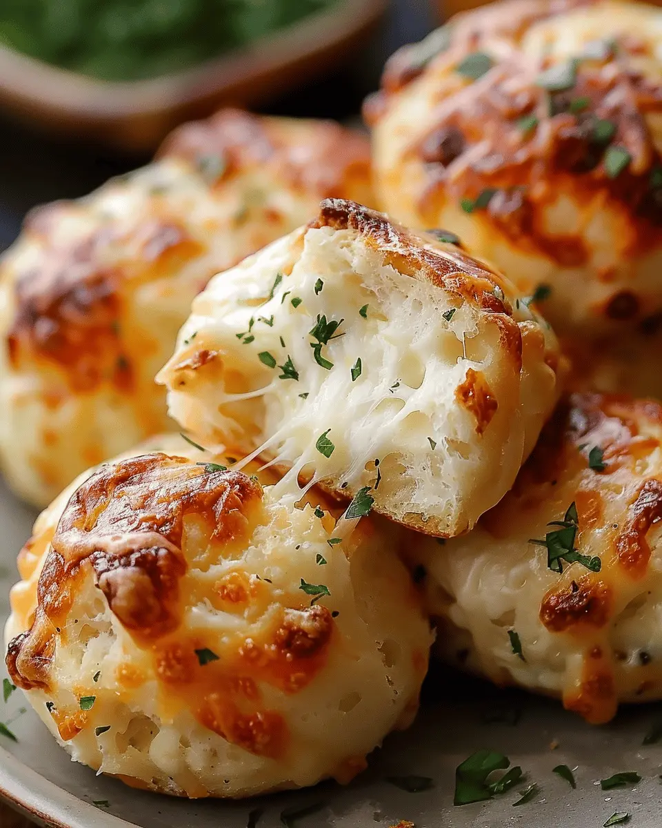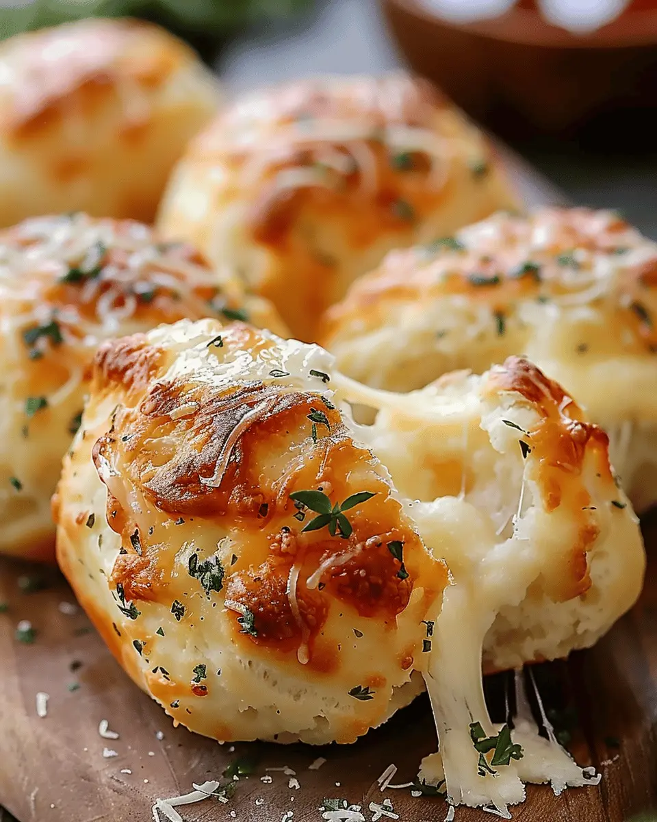 For a fun and inviting presentation, arrange your easy gooey mozzarella biscuit bombs on a vibrant platter with little cups of dipping sauces. Garnish the platter with fresh herbs like basil or parsley for a pop of color. You can also place them on a wooden board paired with a few fresh veggies or charcuterie items, turning your snack into an impressive spread. This visual appeal not only makes eating more enjoyable but also showcases your culinary creativity!