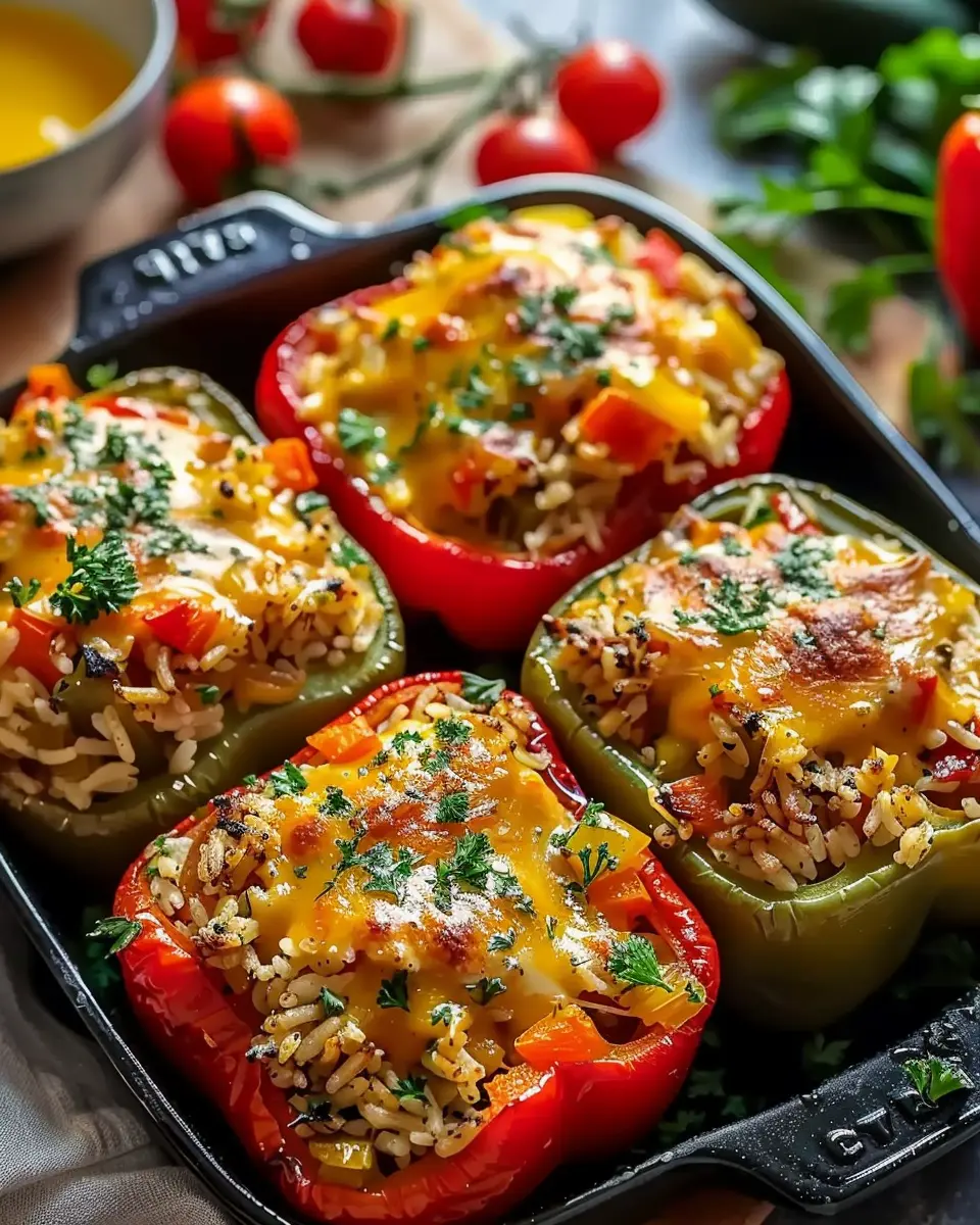 And voila! Your easy vegetarian stuffed bell peppers with rice are ready to impress. Serve them warm, maybe drizzled with a little avocado crema or a fresh salsa on the side, for a meal that is both hearty and vibrant. Enjoy!