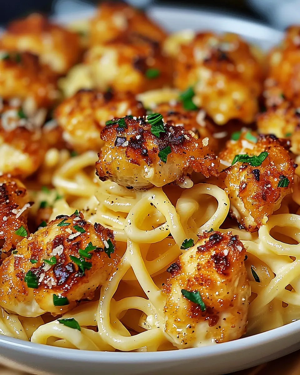 And there you have it—delicious garlic butter chicken bites with savory creamy Parmesan pasta ready to impress! This recipe is not only gratifying to make but absolutely delightful to share with friends or enjoy during a cozy night at home. Happy cooking!