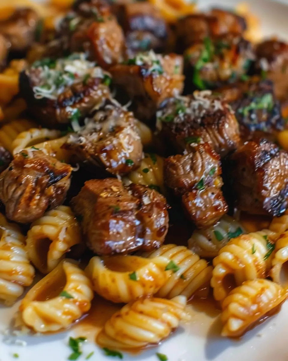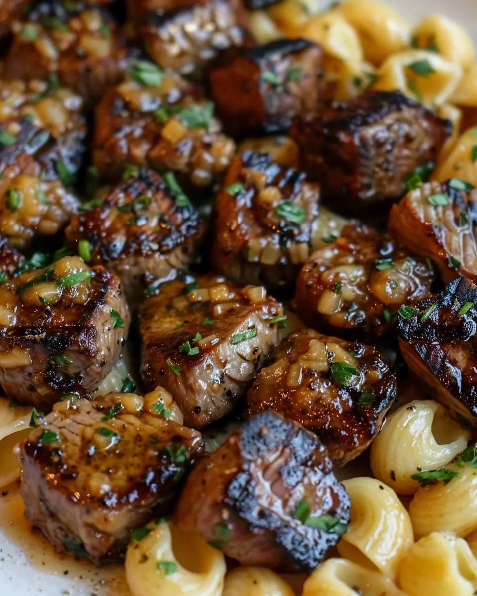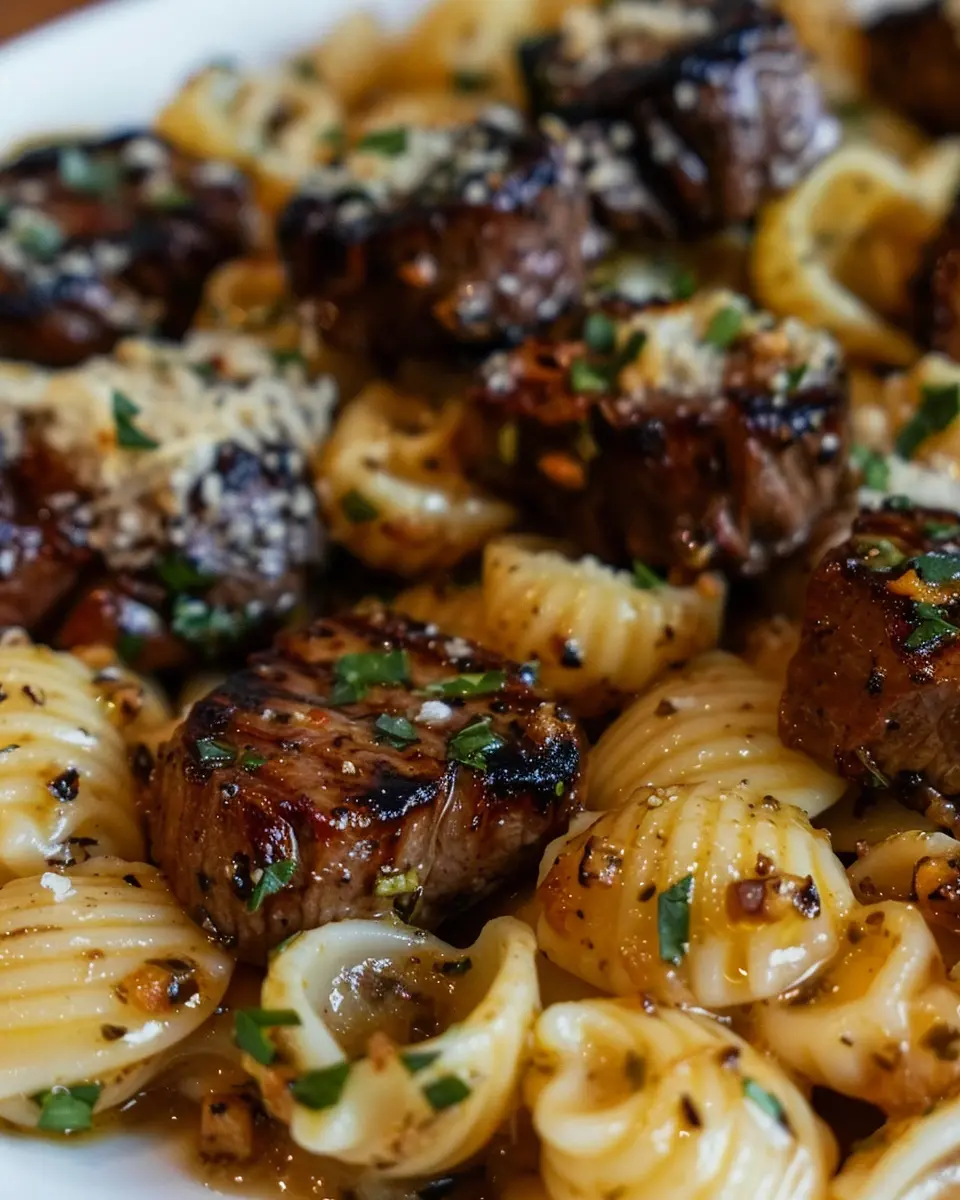 Keywords: Garlic Butter, Steak Bites, Shell Pasta, Creamy Recipe