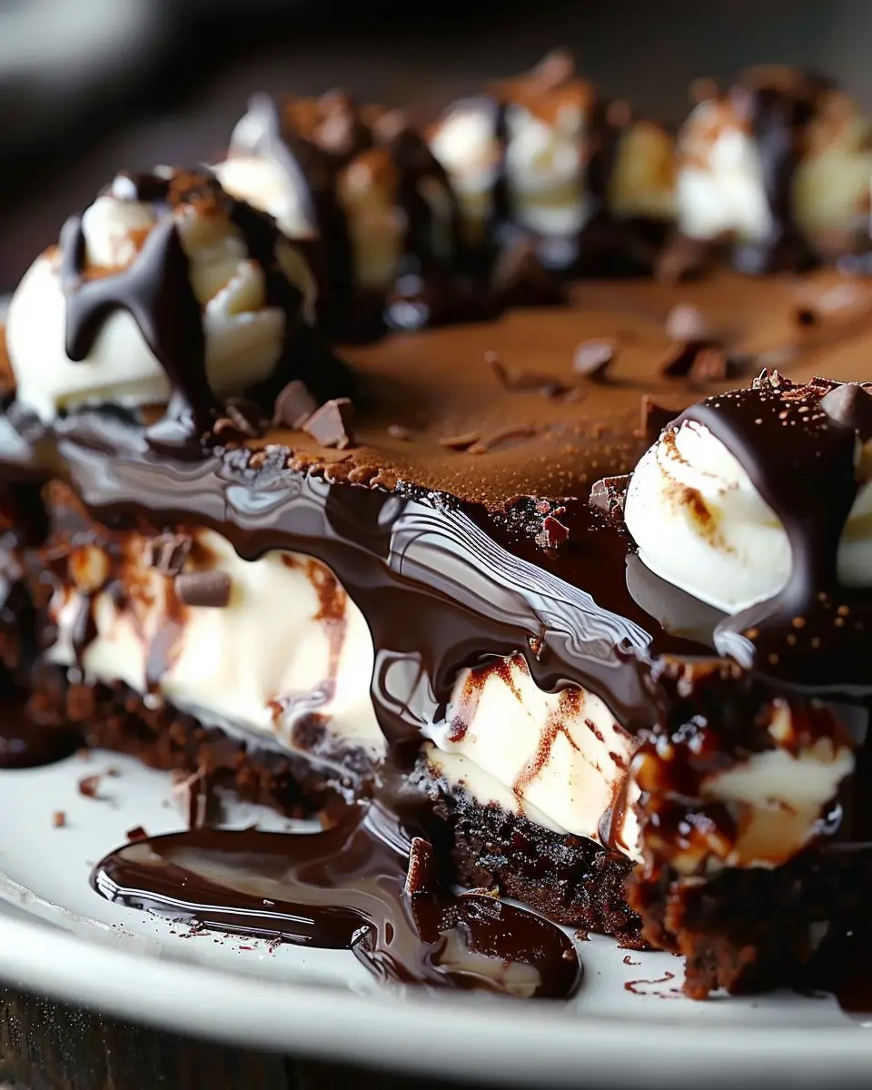 - Layer the fudge: Pour the luscious fudge over your cooled brownies and cheesecake mixture, spreading it evenly.