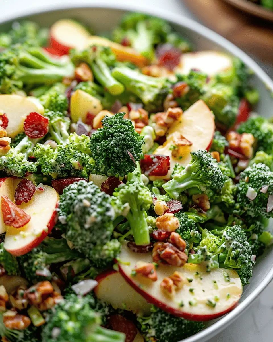 The Honeycrisp Apple Broccoli Salad is not just a vibrant addition to your table; it’s a powerhouse of nutrients! Combining crunchy broccoli with sweet Honeycrisp apples creates a delightful contrast, both in texture and flavor. This salad stands out for its impressive profile, including vitamins C and K, and dietary fiber, which contribute to your overall health and well-being. Did you know that just a single serving of broccoli can provide your daily dose of vitamin C? Pairing it with the natural sweetness of apples makes this salad a guilt-free indulgence that packs a punch.
