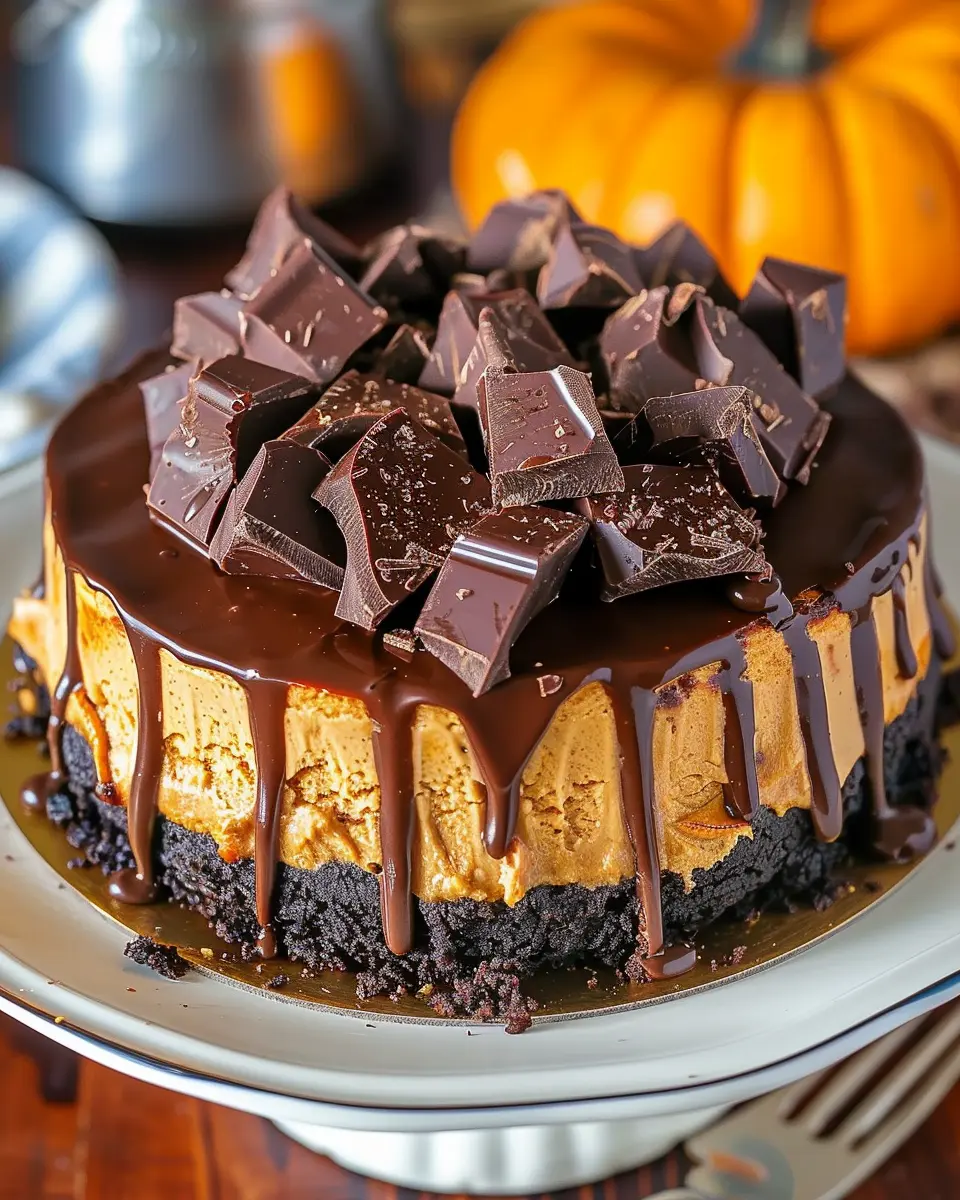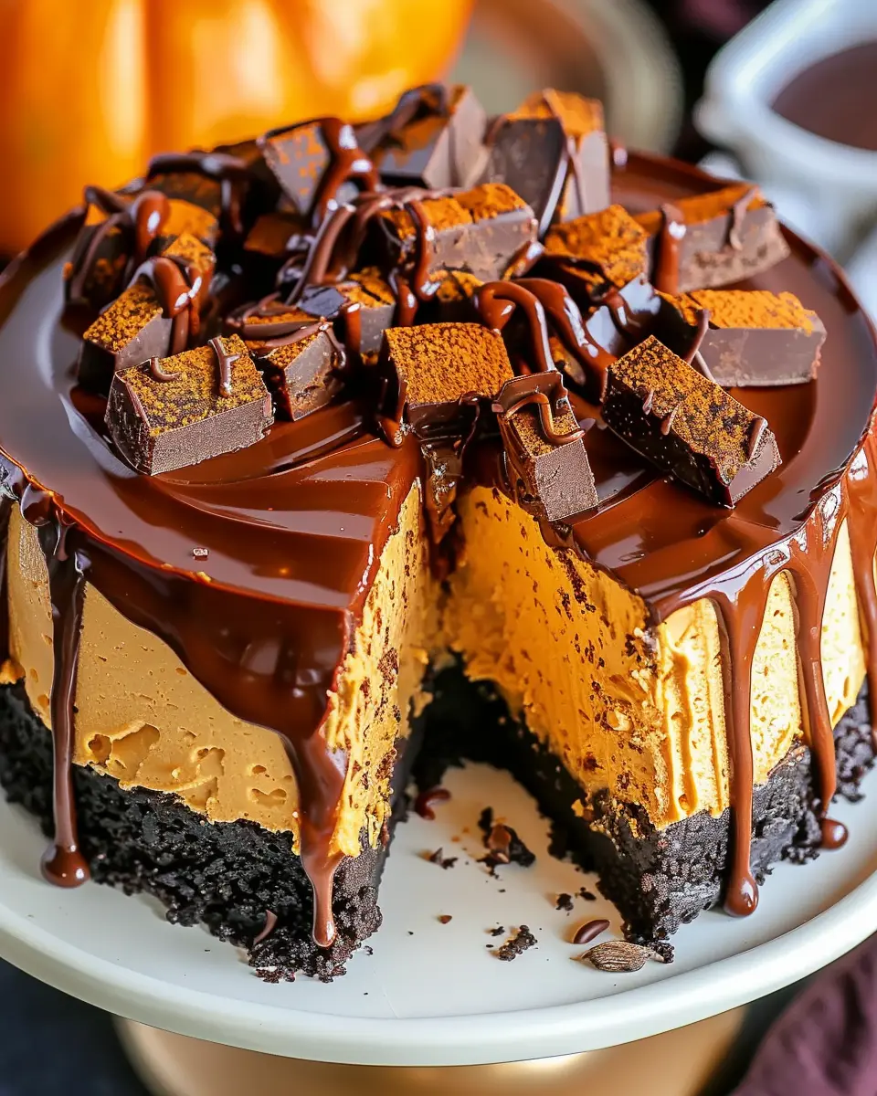PrintIndulge in Copycat Chunkin’ Chocolate Pumpkin Cheesecake Bliss