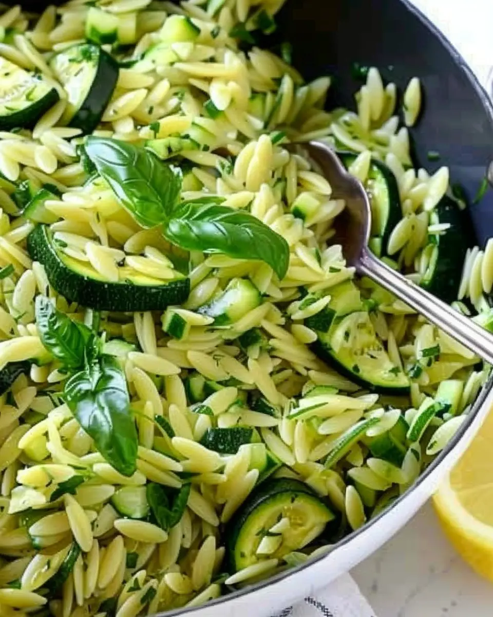 A refreshing and easy-to-make dish featuring orzo pasta, zucchini, and a zesty lemon flavor.