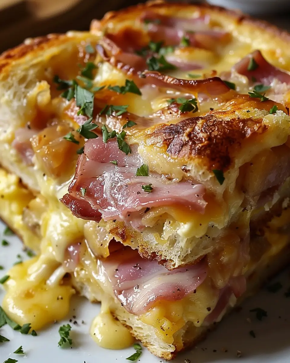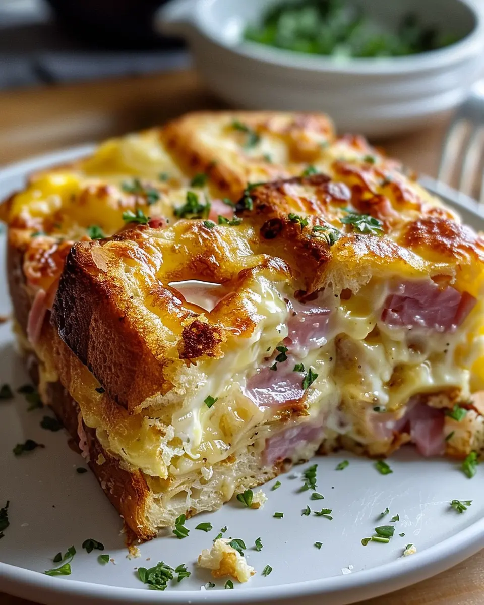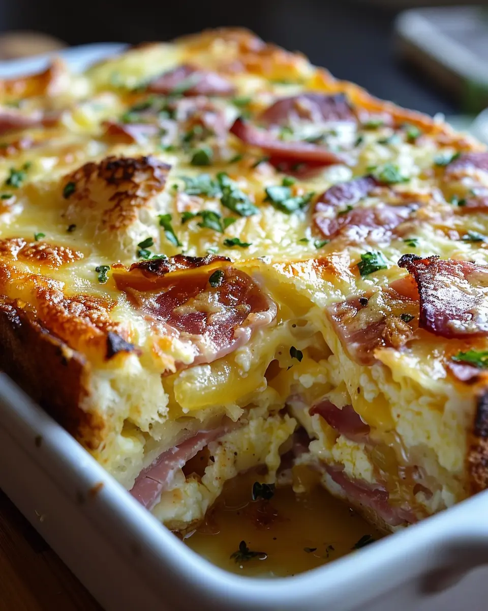 PrintMonte Cristo Breakfast Casserole: Easy and Indulgent Recipe with Turkey Bacon and Chicken Ham
