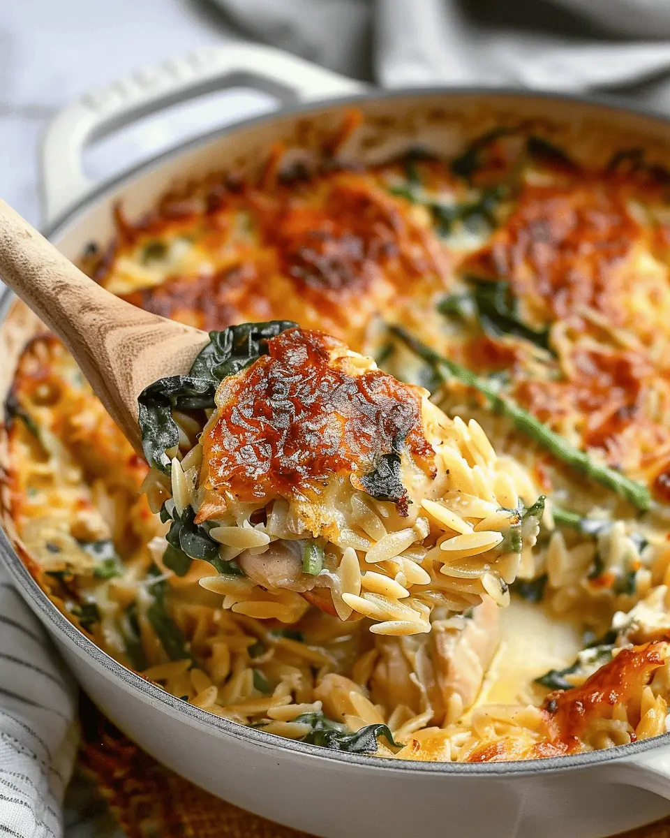 Preheat your oven to 350°F (175°C). Once preheated, pop your assembled dish into the oven and let it bake for about 25-30 minutes. The orzo will absorb the broth and cream, becoming a delightful texture, while the cheese on top will become bubbly and golden brown. Keep an eye on it towards the end; you want that perfect cheese ooze without burning.