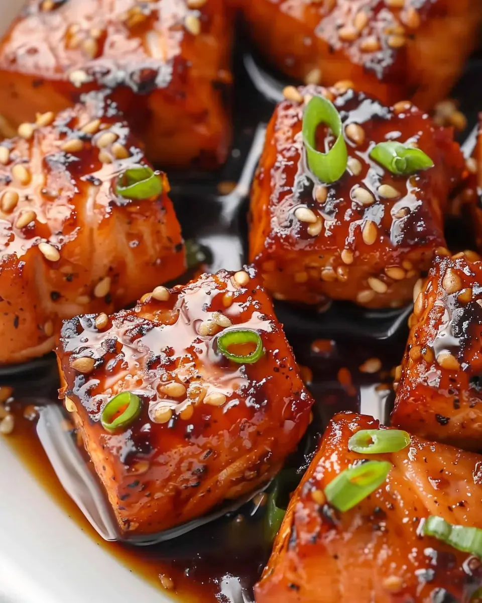 A deliciously easy recipe for honey garlic salmon bites that are perfect for a quick gourmet treat.
