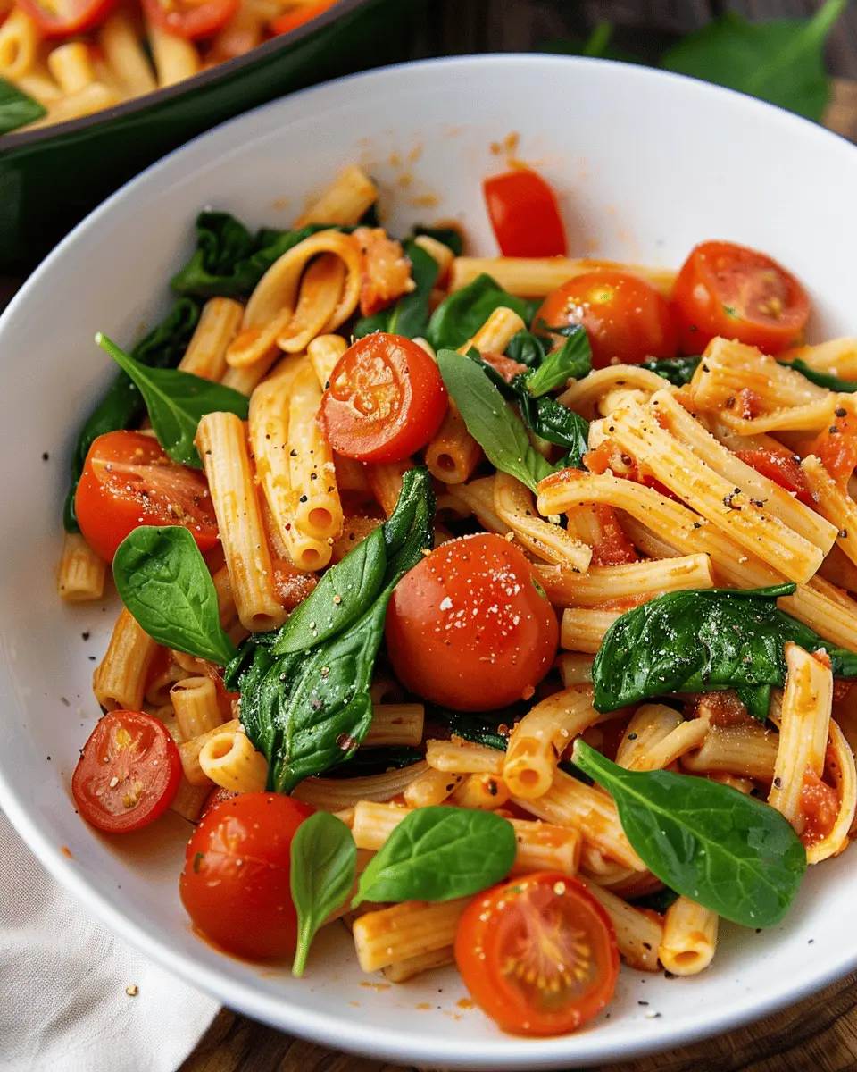 One Pot Pasta with Spinach and Tomatoes: Easy Comfort Food Delight