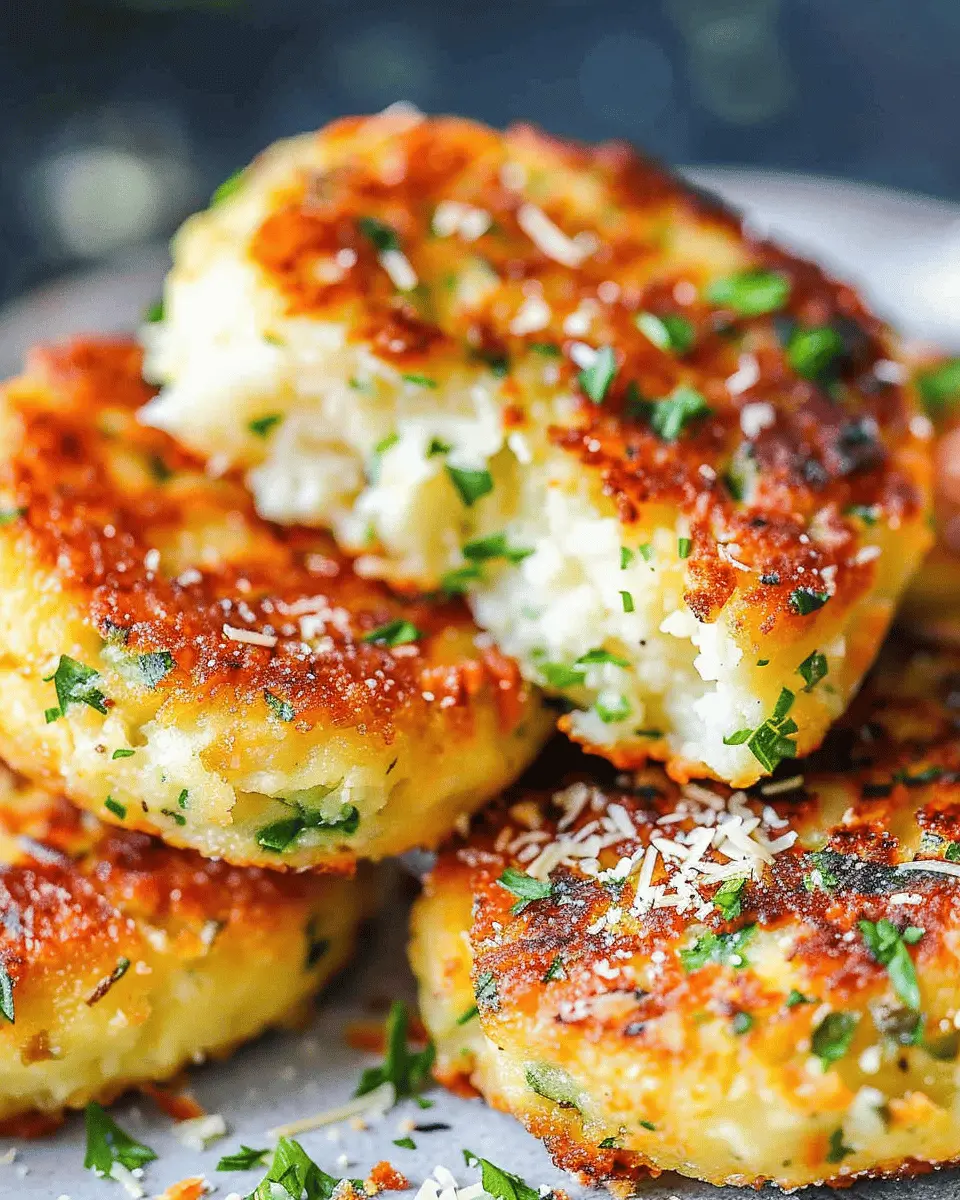 Absolutely! Parmesan Mashed Potato Cakes are a fantastic option for meal prep. You can prepare the cakes up to a day in advance. Just make the mixture, shape the cakes, and refrigerate them until you’re ready to cook. This not only saves you time but also allows the flavors to meld beautifully. If you want to freeze them, place the uncooked cakes on a baking sheet and freeze until firm, then transfer them to a freezer-safe container. When you’re ready to enjoy them, just cook from frozen, adding a few extra minutes to the cooking time.