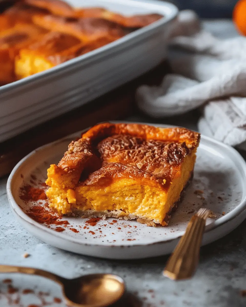 Enjoy this warm and comforting Pumpkin Cottage Cheese Bake, perfect for a fall treat or a cozy dessert.