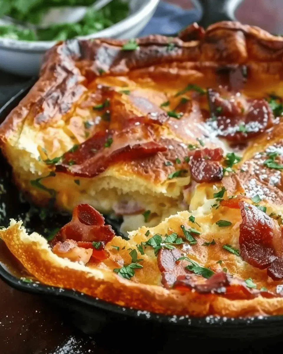 If you’re craving a dish that’s sky-high in flavor and oh-so-comforting, this is it. Imagine slicing into a warm, cheesy Dutch baby, the aroma of turkey bacon wafting through your kitchen—what could be better? Let’s dive into the recipe and get cooking! For more tips on Dutch babies, check out Serious Eats for a deeper culinary exploration.