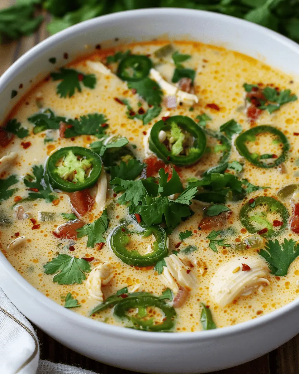 Garnishes can turn a comforting bowl of spicy jalapeño popper chicken soup into a visual feast. Here are a few ideas to make your soup truly shine: