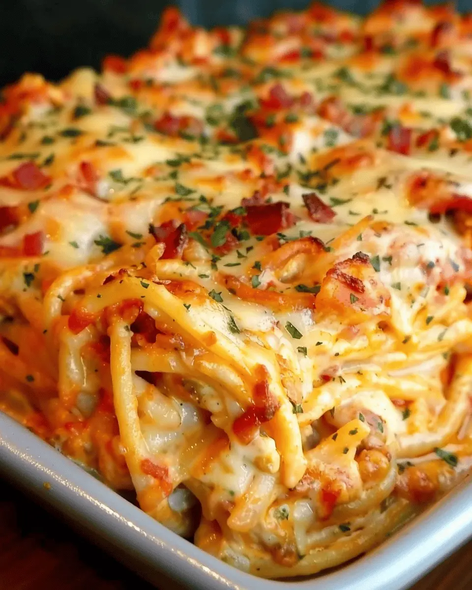 This Spicy Southern Cheesy Chicken Spaghetti Casserole is a delicious twist on a classic dish, packed with flavor and comfort.