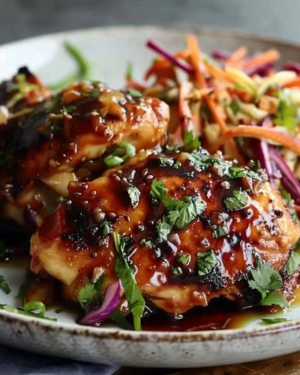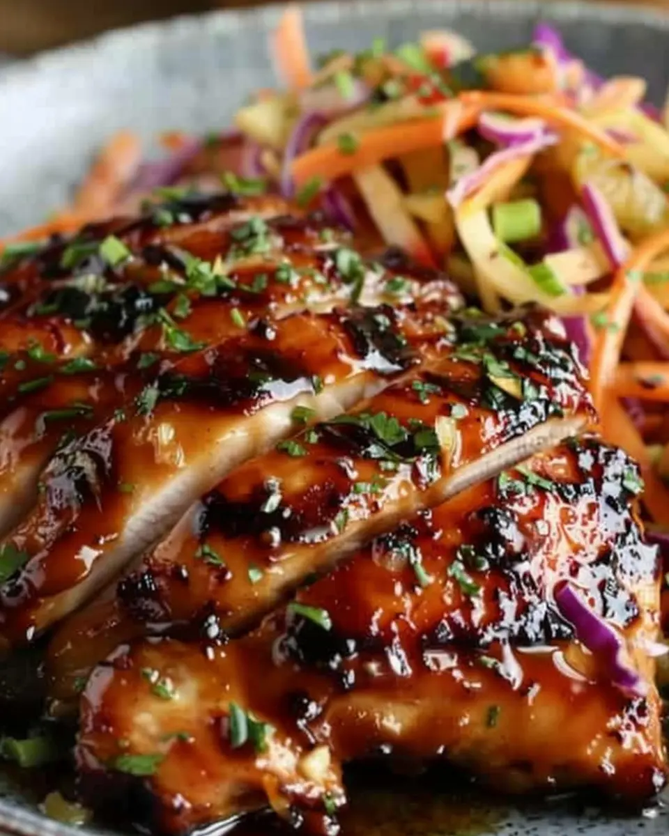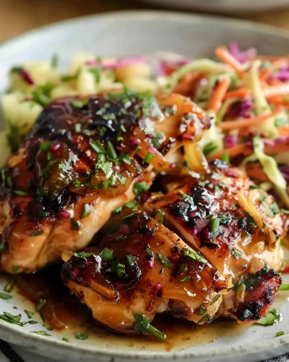 A warm and inviting dish perfect for autumn dinners, featuring tender chicken glazed in apple cider and served with a refreshing slaw.