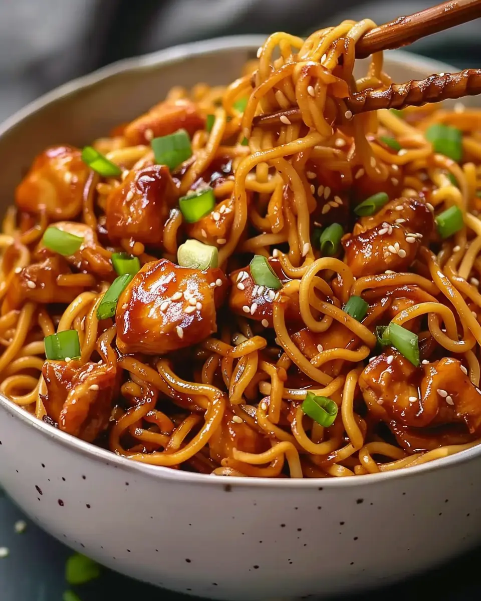 Keywords: Sticky Garlic Chicken Noodles, easy chicken recipe, flavorful noodles