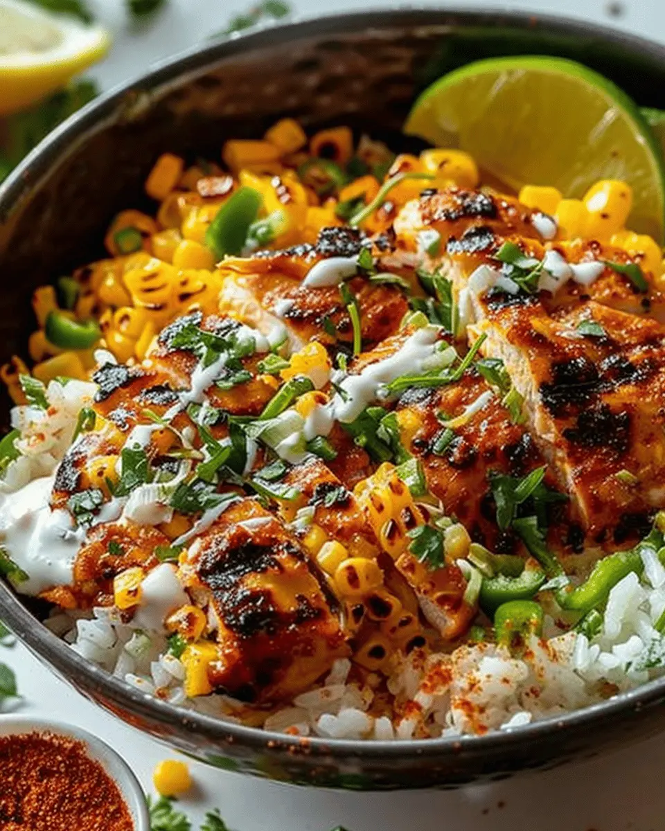 A delicious and satisfying street corn chicken rice bowl that captures the flavors of summer.