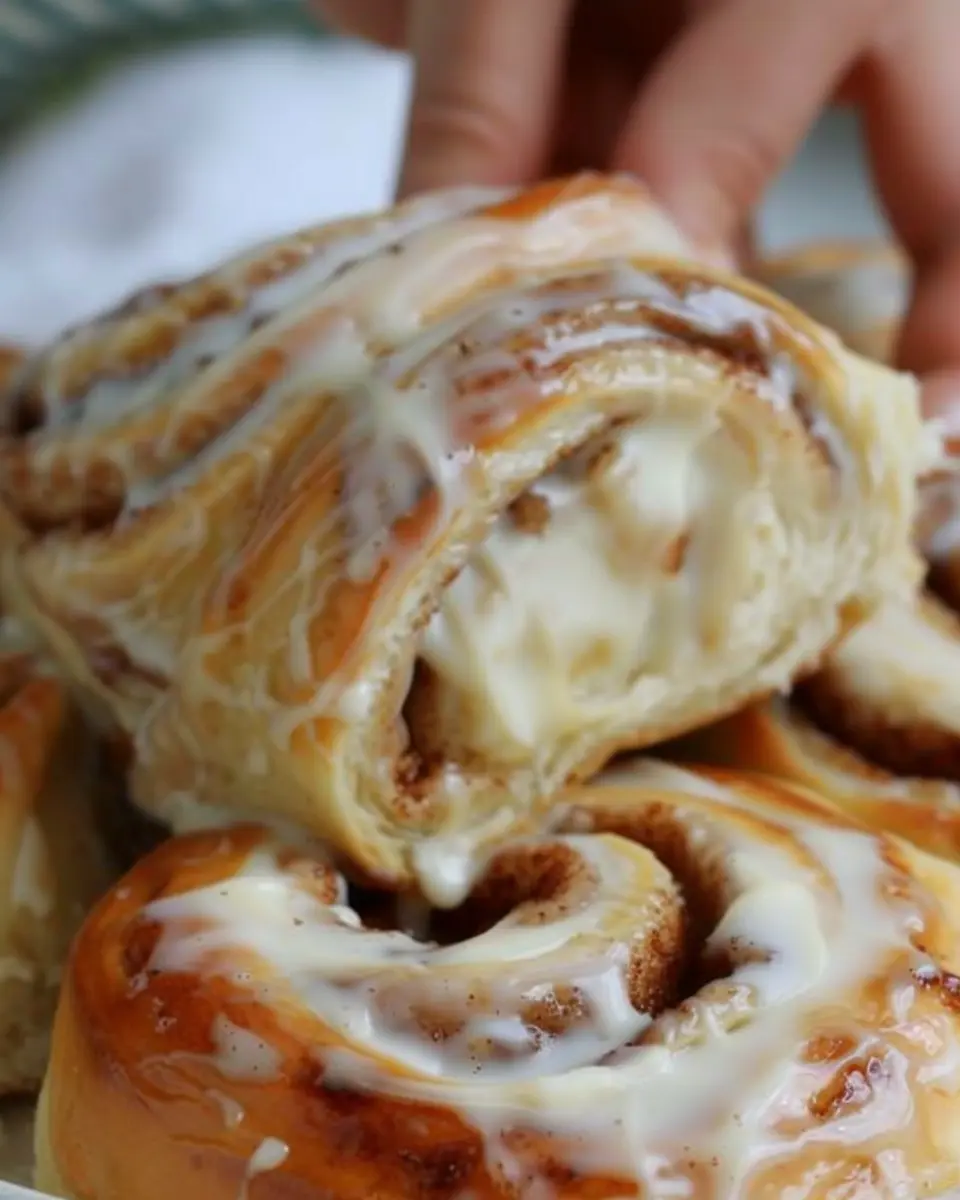 Once your cinnamon rolls are fresh out of the oven, let them cool for about 10 minutes before generously spreading that luscious cream cheese frosting on top. Serve them warm, and enjoy the delight as they pull apart into fluffy bites.