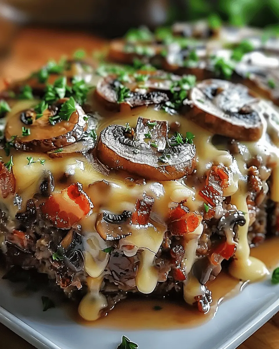 A delightful meatloaf recipe combining turkey, bacon, mushrooms, and Swiss cheese for a savory experience.